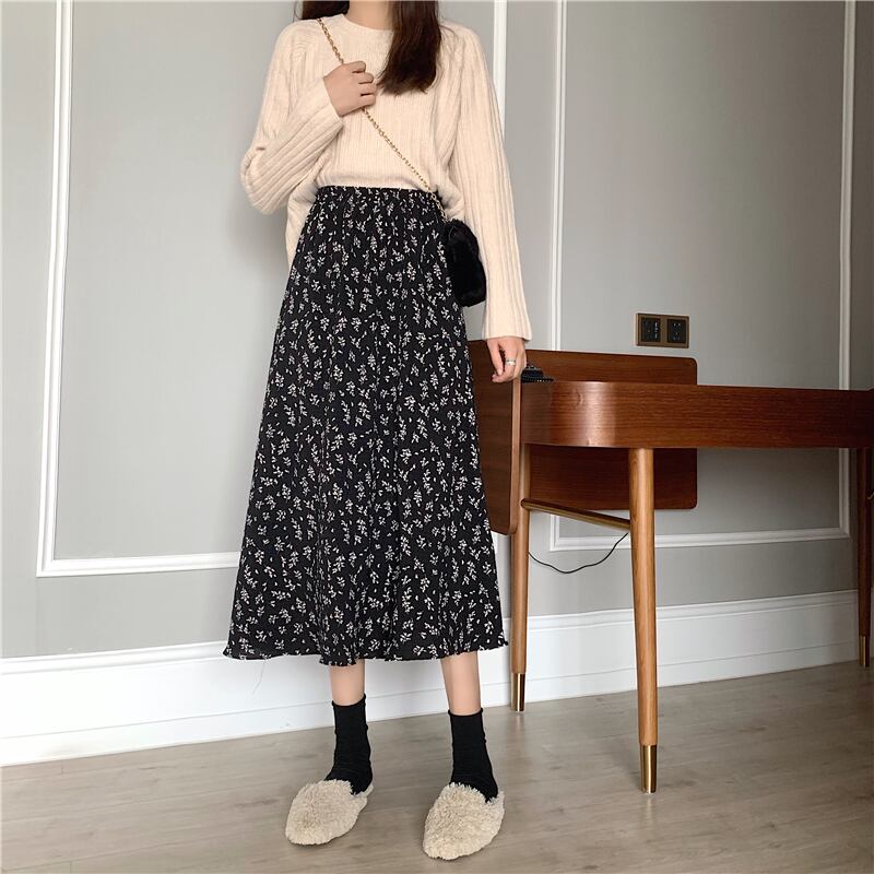 【韓国通販 dgo】retro middle-length floral skirt 2colors(A0820)
