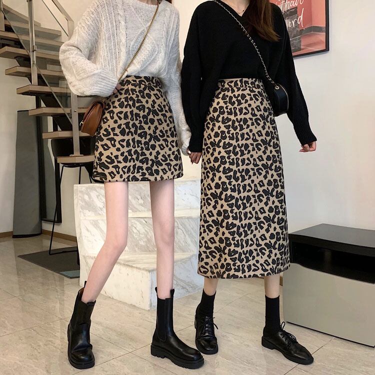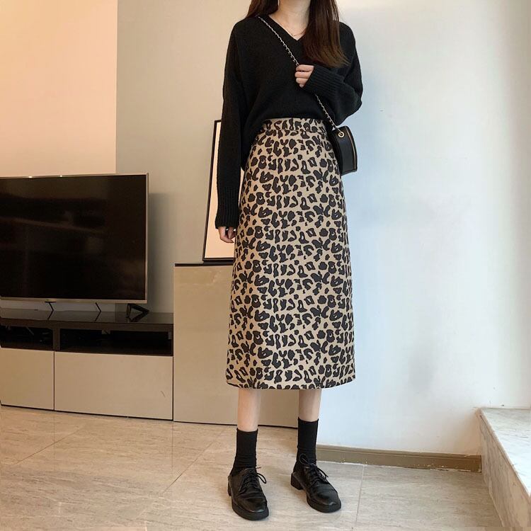 【韓国通販 dgo】leopard pattern high-waist middle-length skirt(A0813)