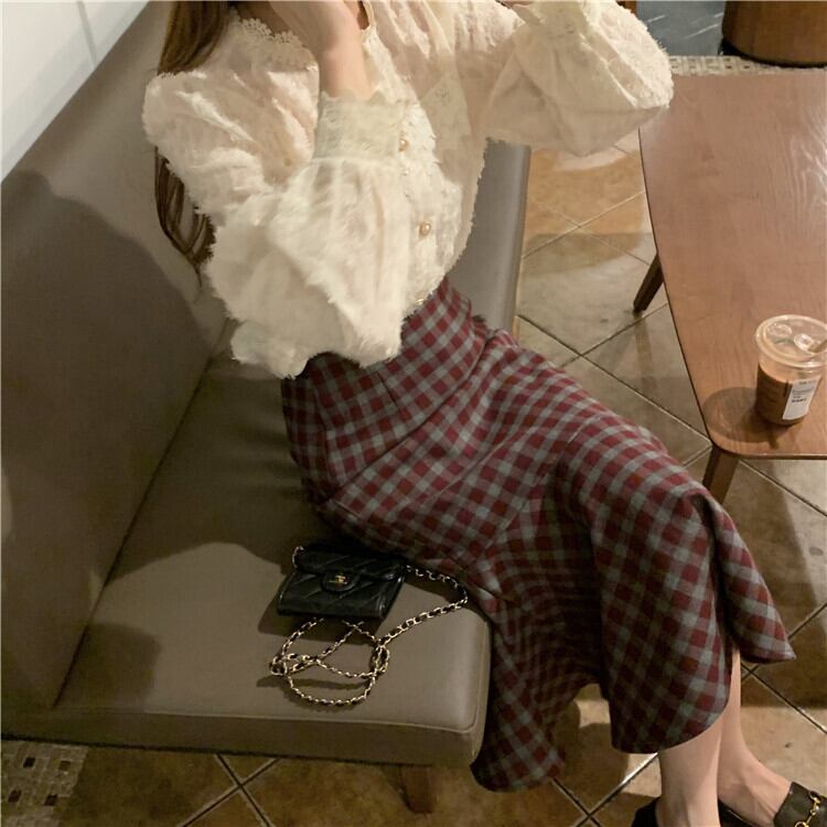 【韓国通販 dgo】retro high-waist fish tail skirt (A0808)
