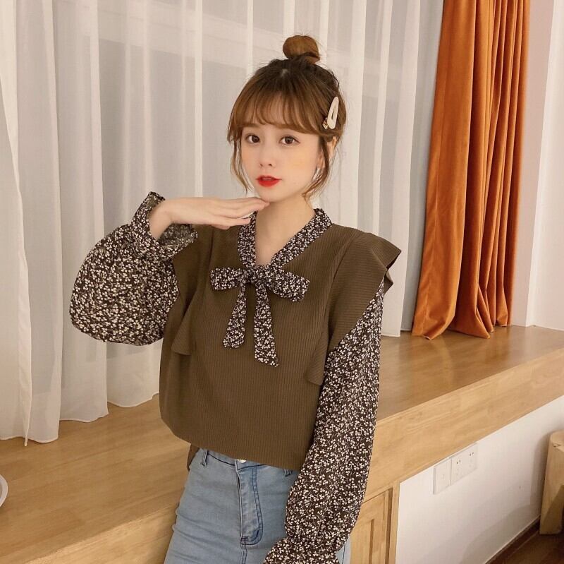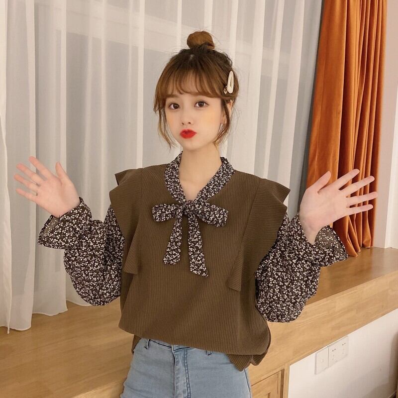 【韓国通販 dgo】trumpet sleeve fake two-piece sweater 3colors(A0802)