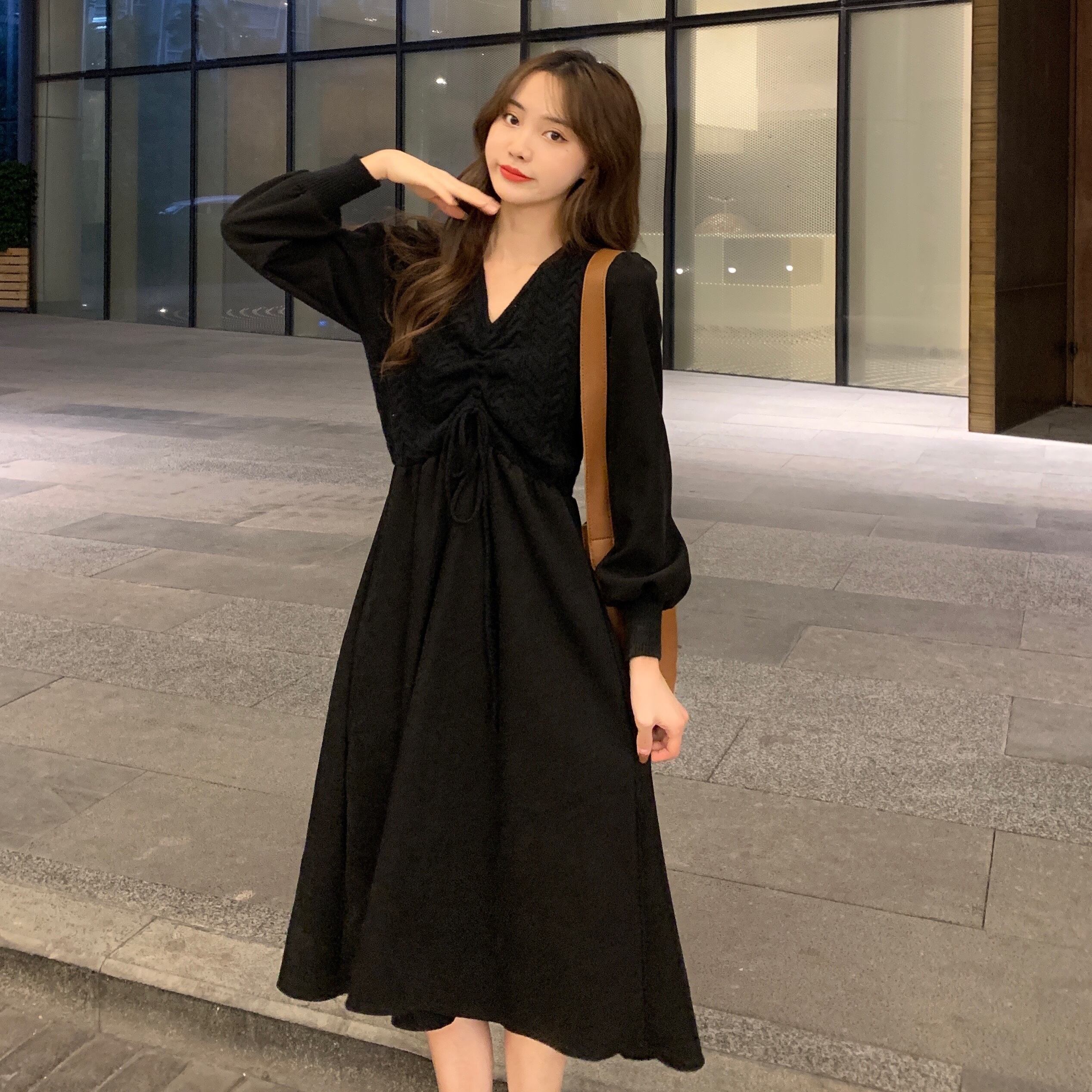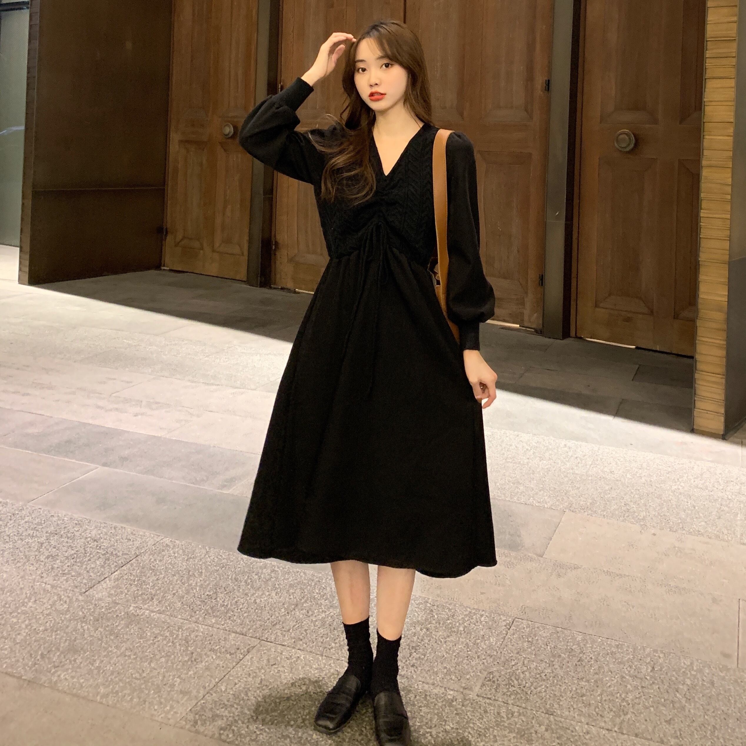 【韓国通販 dgo】high-waist v-neck one-piece dress 2colors(A0797)