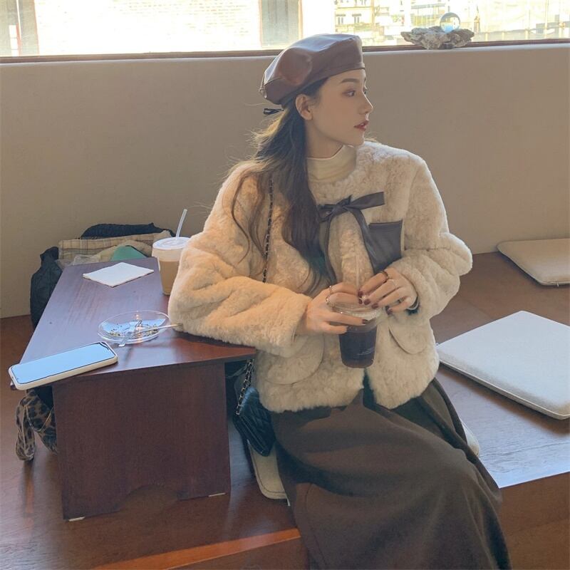 【韓国通販 dgo】lace up short jacket apricot color(A0795)