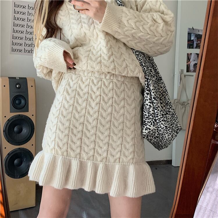 【韓国通販 dgo】apricot color two-piece drop sleeve tops+fish tail skirt(A0790)