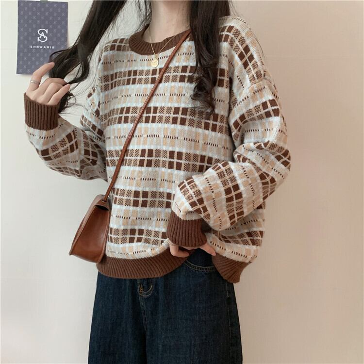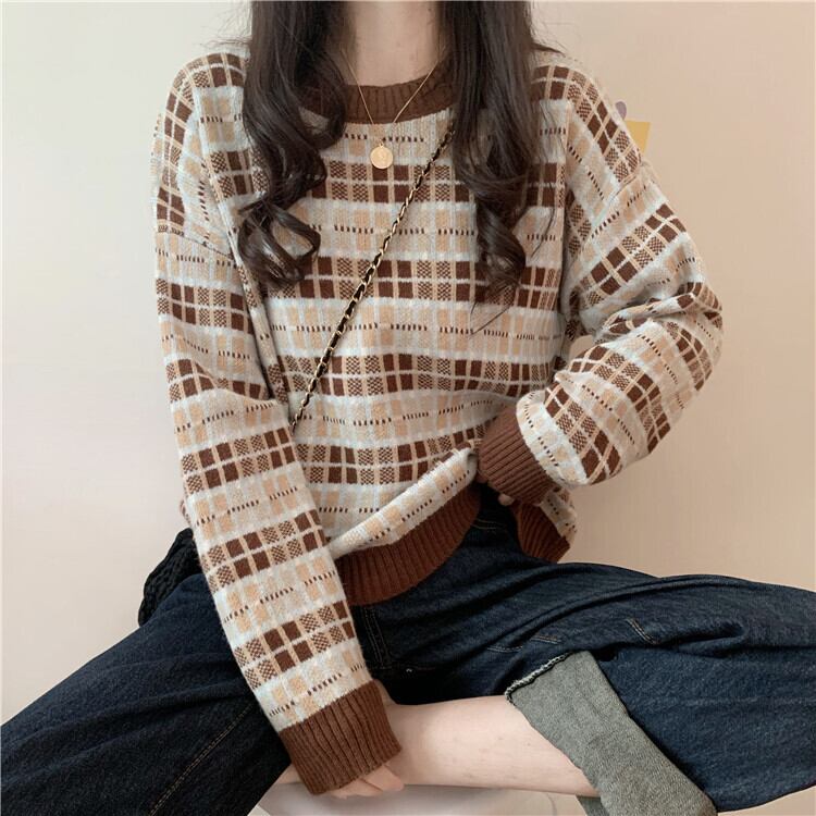 【韓国通販 dgo】retro round neck sweater 2colors(A0788)