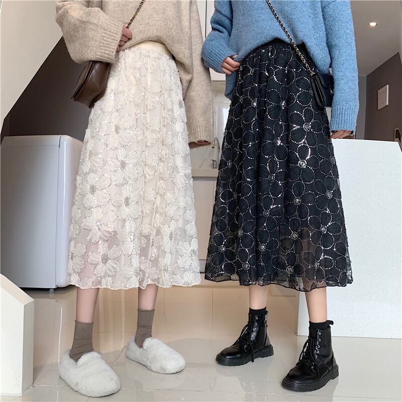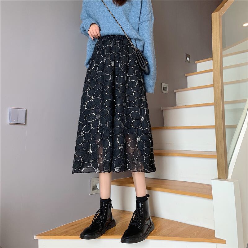 【韓国通販 dgo】retro middle-length floral skirt 2colors(A0782)