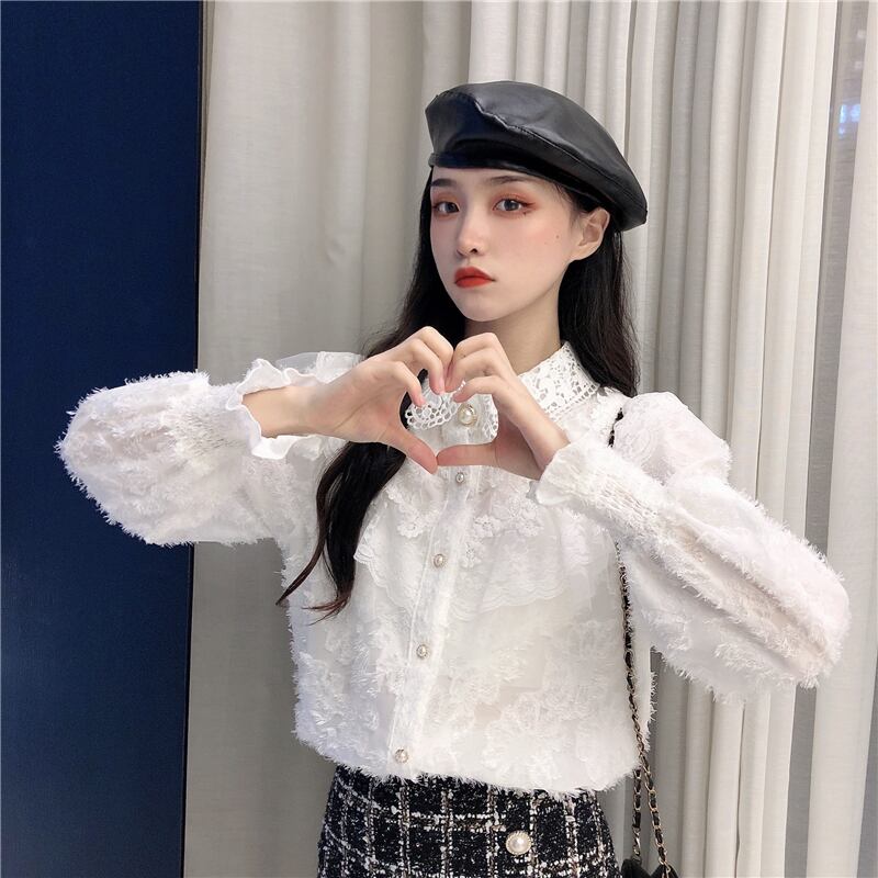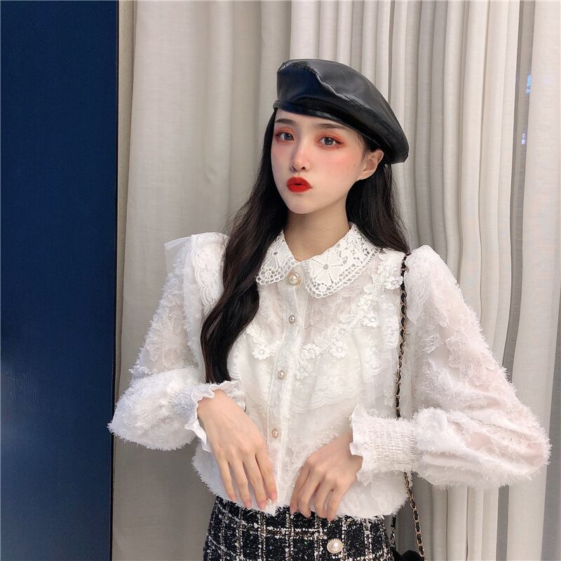 【韓国通販 dgo】square collar lace shirt 2colors(A0764)