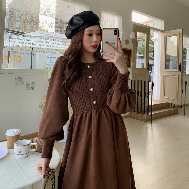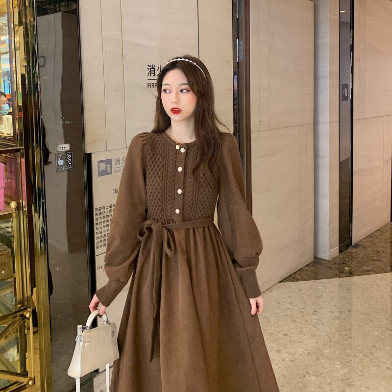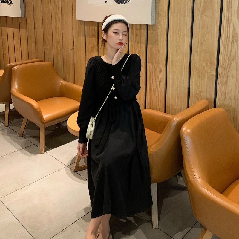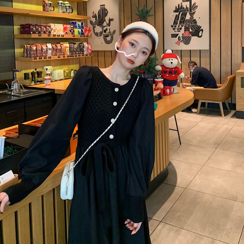 【韓国通販 dgo】high-waist round neck knit one-piece dress 2colors(A0757)