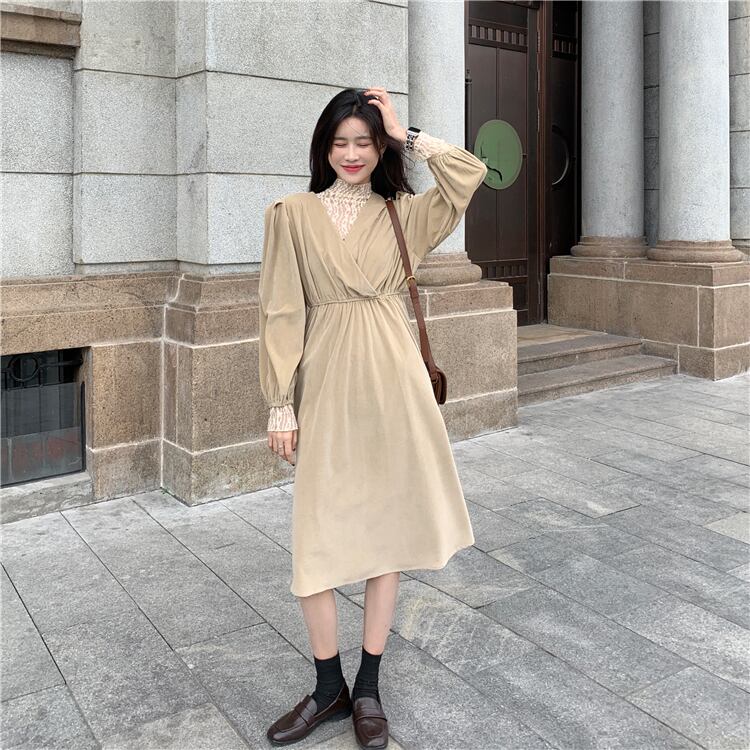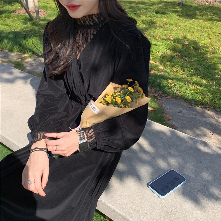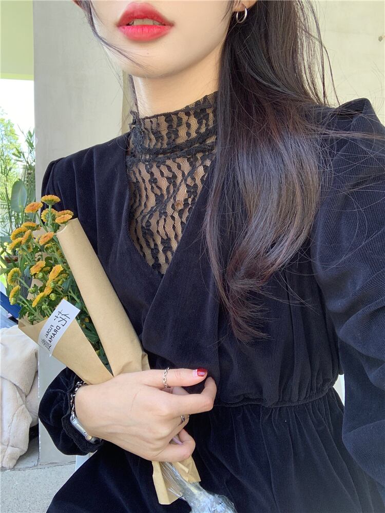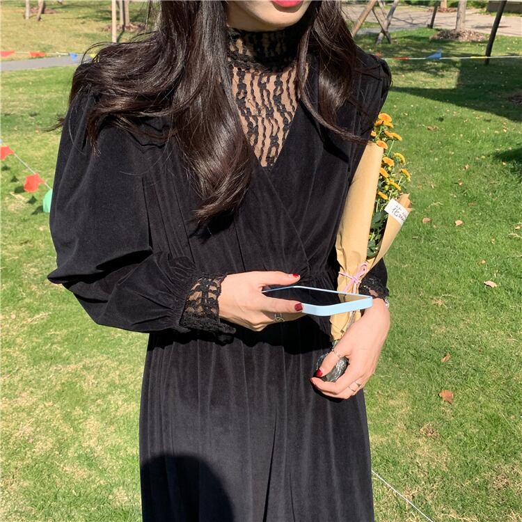 【韓国通販 dgo】v-neck one-piece dress+mesh shirt two-piece 2colors(A0756)