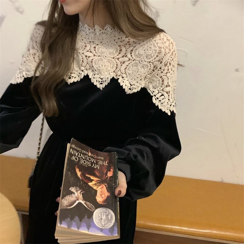 【韓国通販 dgo】middle-length lace one-piece dress 2colors(A0743)センス溢れるファッションitem