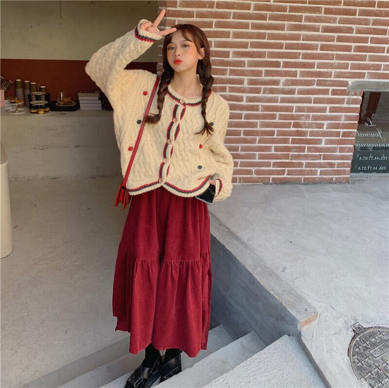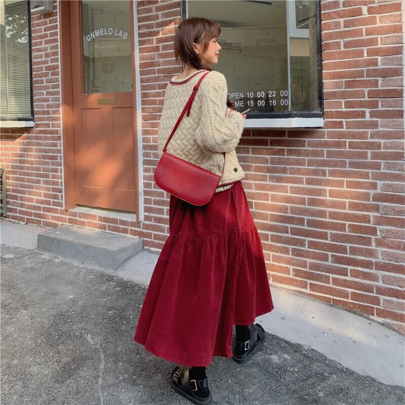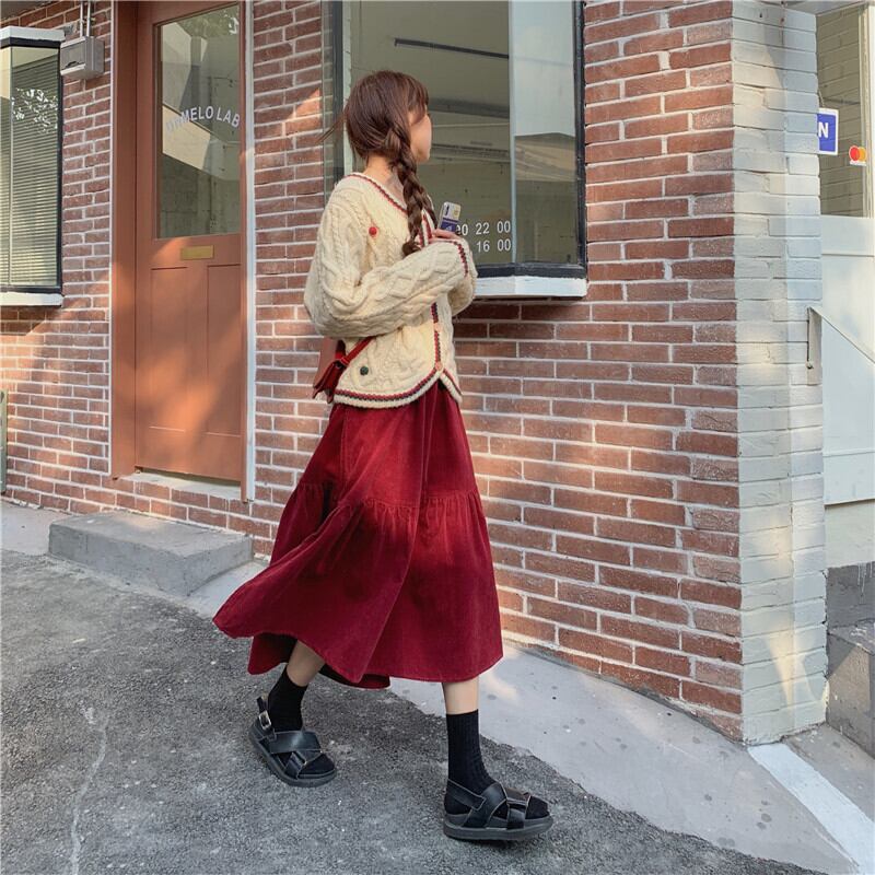 【韓国通販 dgo】high-waist middle-length corduroy skirt winered color(A0735)