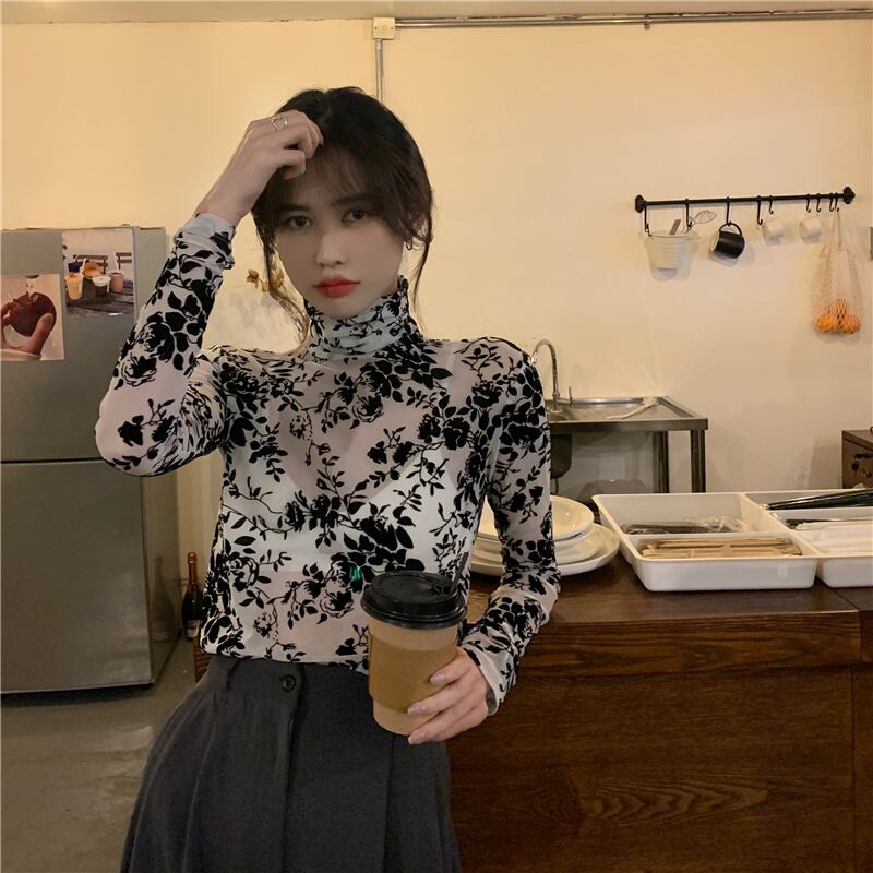 【韓国通販 dgo】slim long sleeve floral tops(A0728)