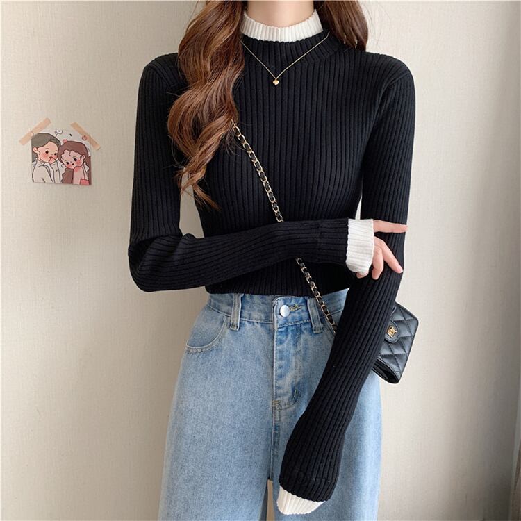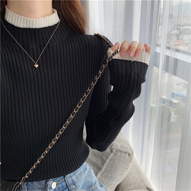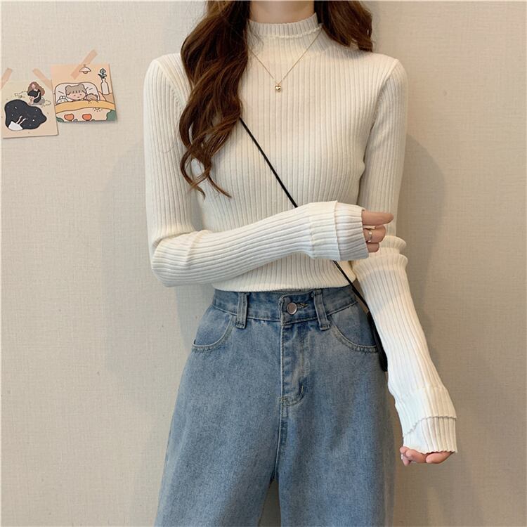 【韓国通販 dgo】half high neck long sleeve tops 2colors(A0719)