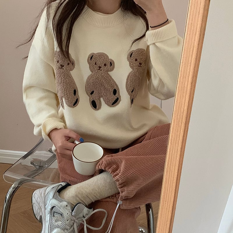 【韓国通販 dgo】crew neck sweater 2colors(bear design)(A0720)
