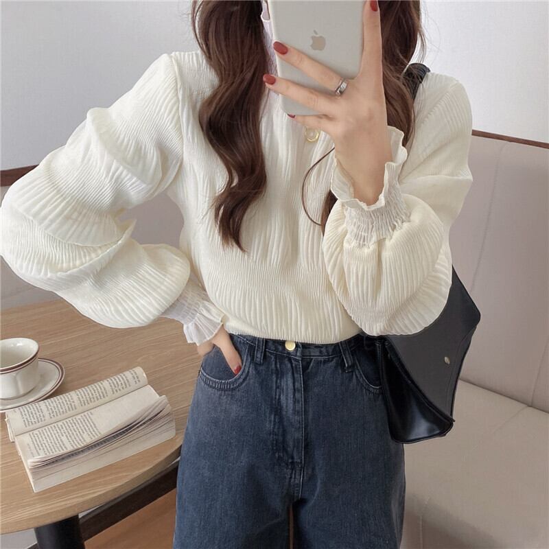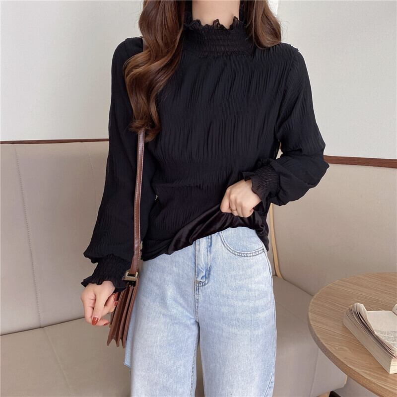 【韓国通販 dgo】long sleeve chiffon shirt plus velvet 3colors(A0704)