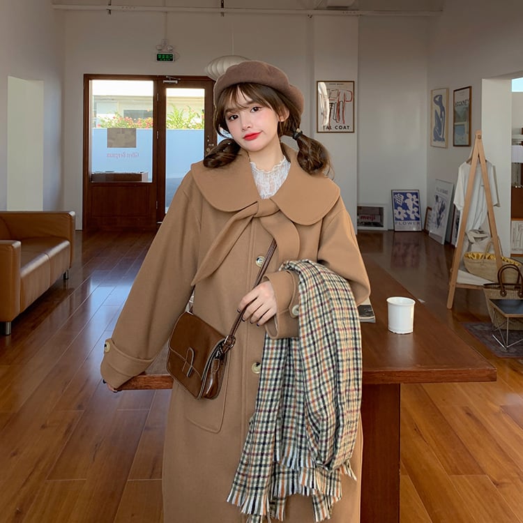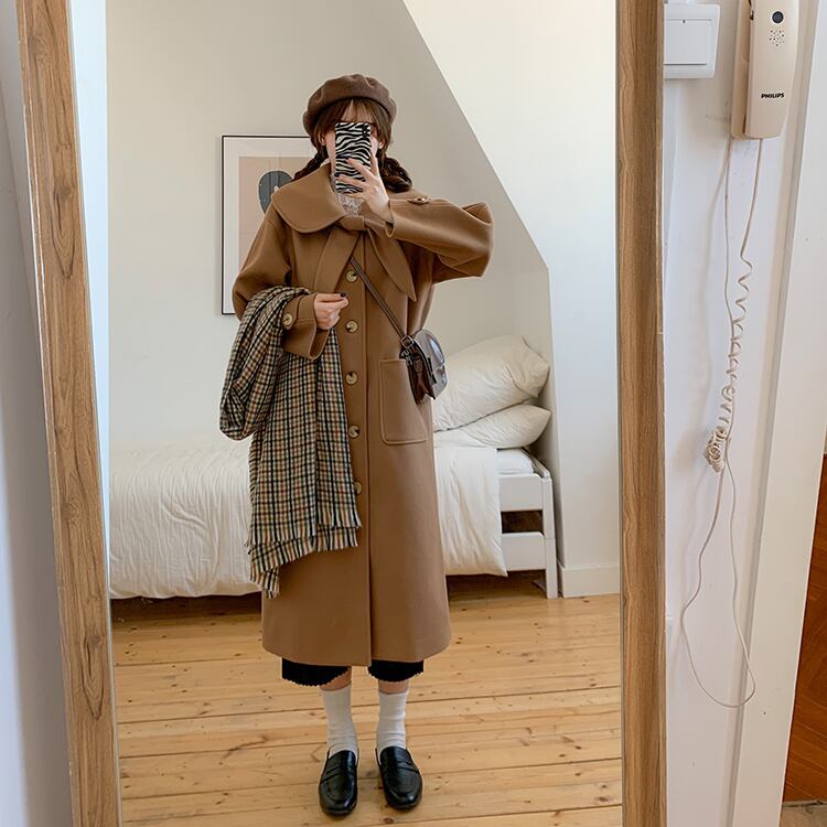 【韓国通販 dgo】middle-length wool coat camel color (A0705)