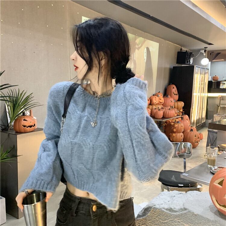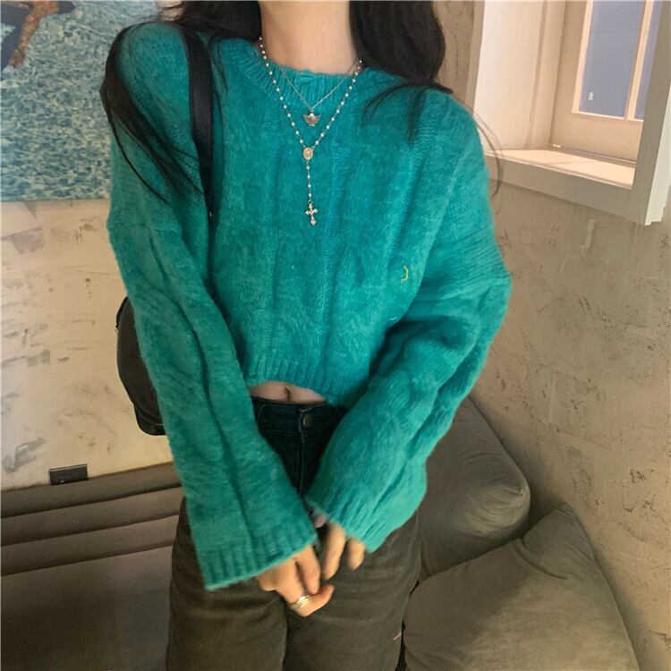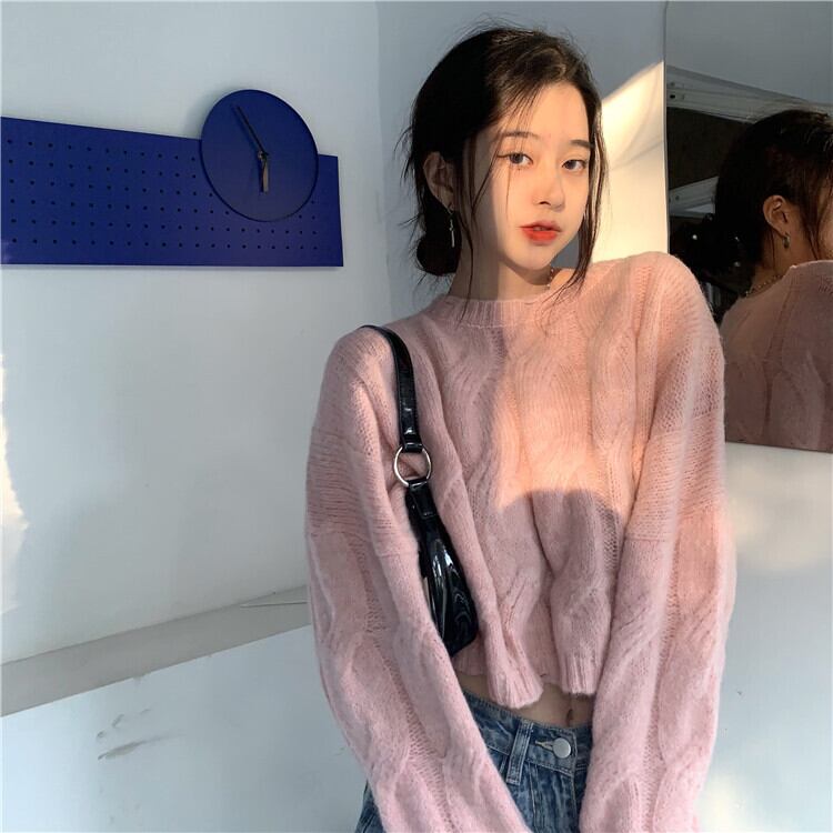 【韓国通販 dgo】low round neck short length sweater 4colors(A0683)