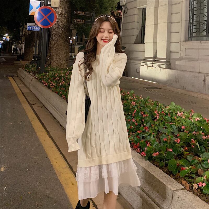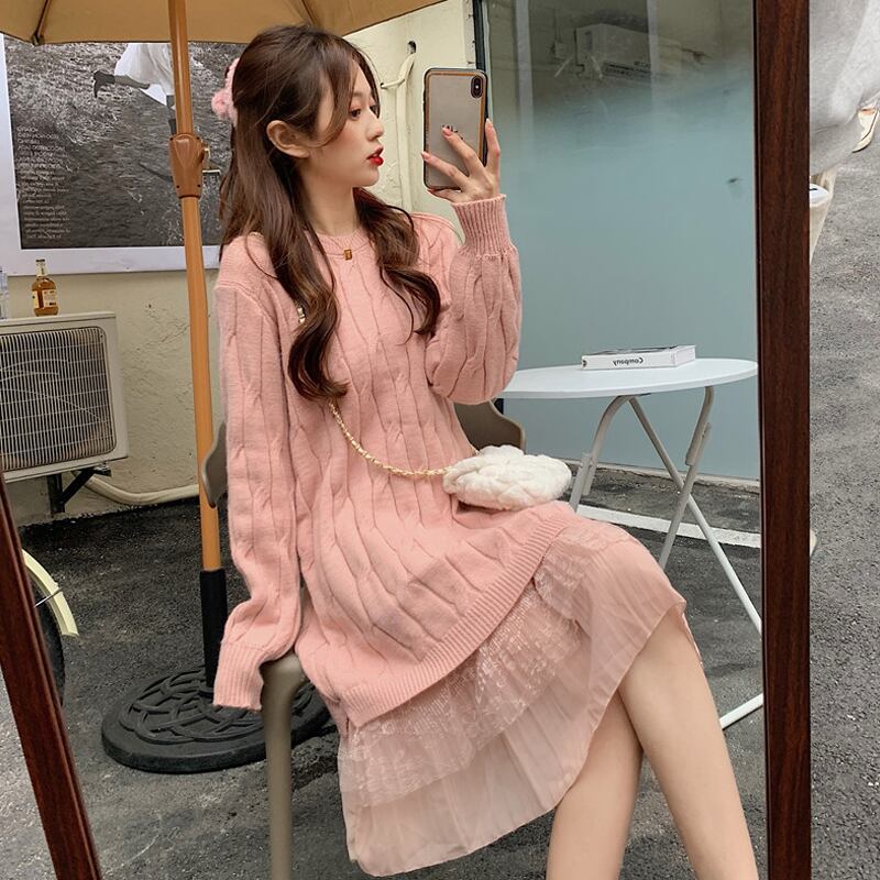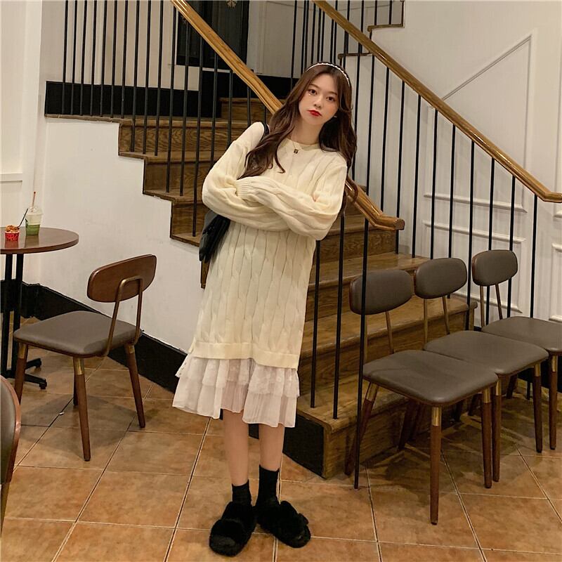 【韓国通販 dgo】round neck middle-length one-piece 2colors(A0681)