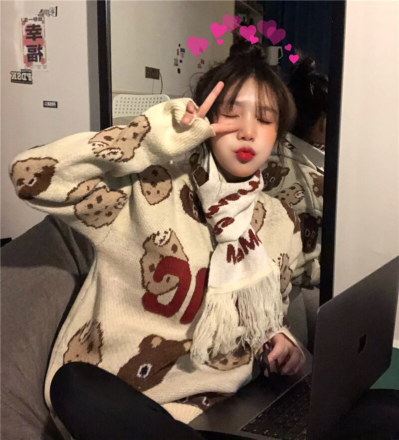 【韓国通販 dgo】round neck long sleeve sweater bear design 2colors(A0679)