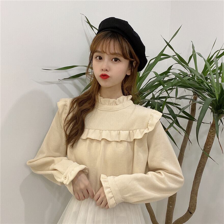 【韓国通販 dgo】half high neck long sleeve tops 3colors(A0673)