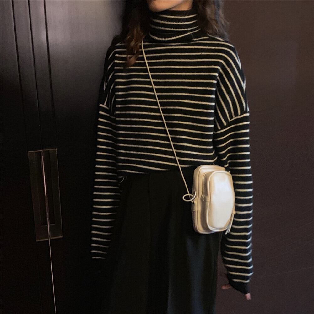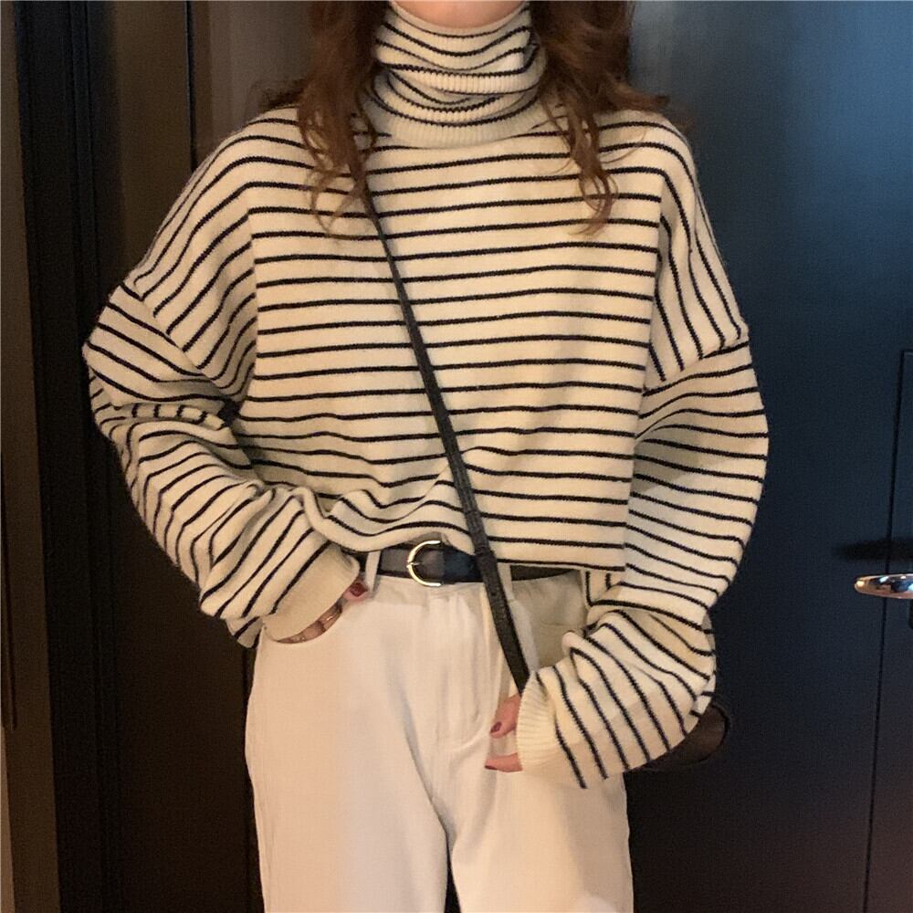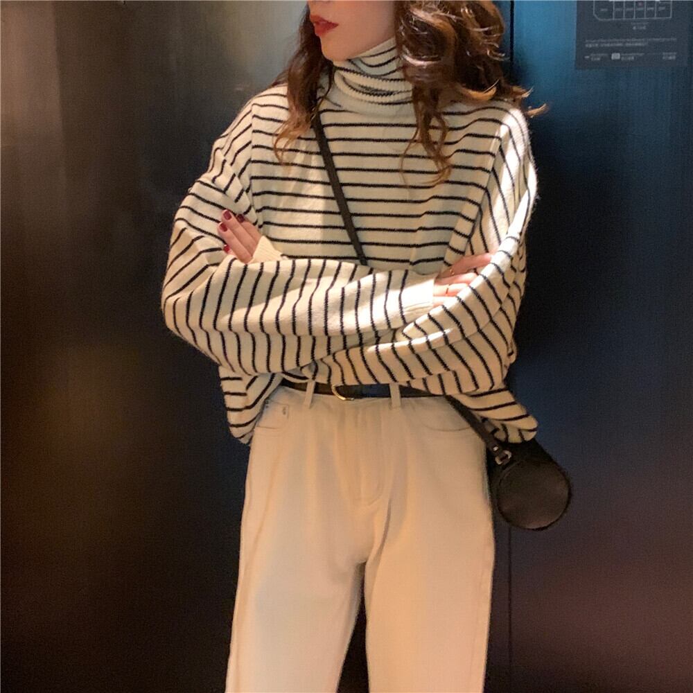 【韓国通販 dgo】high neck stripe sweater 2colors(A0669)
