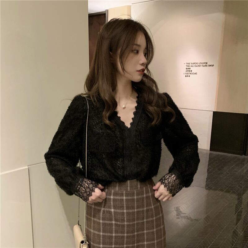 【韓国通販 dgo】retro v-neck shirt 2colors(A0663)