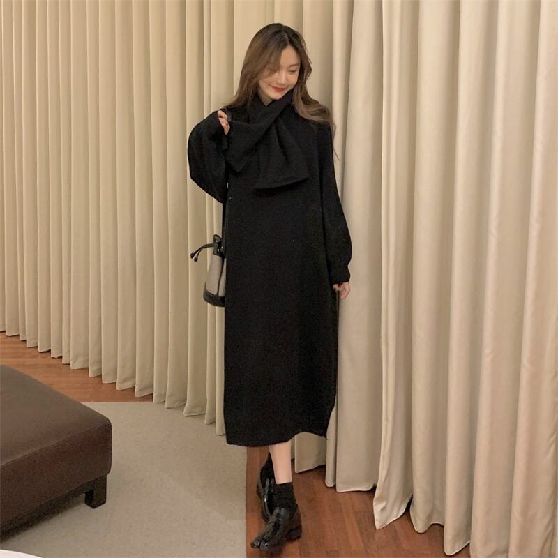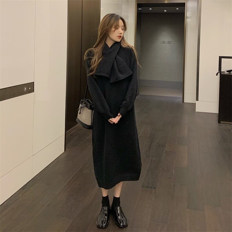 【韓国通販 dgo】retro high-waist middle-length knit one-piece 3colors(A0654)