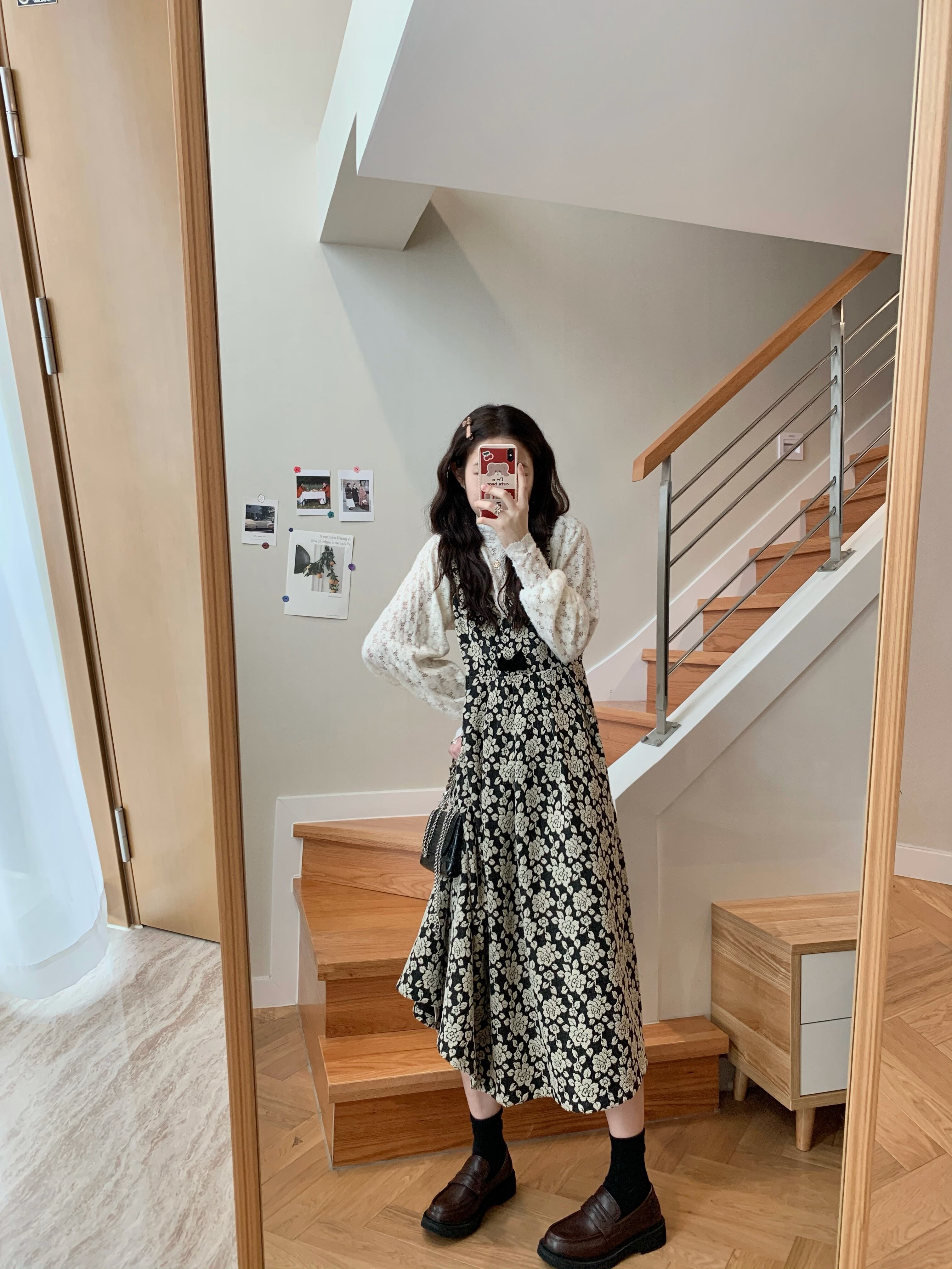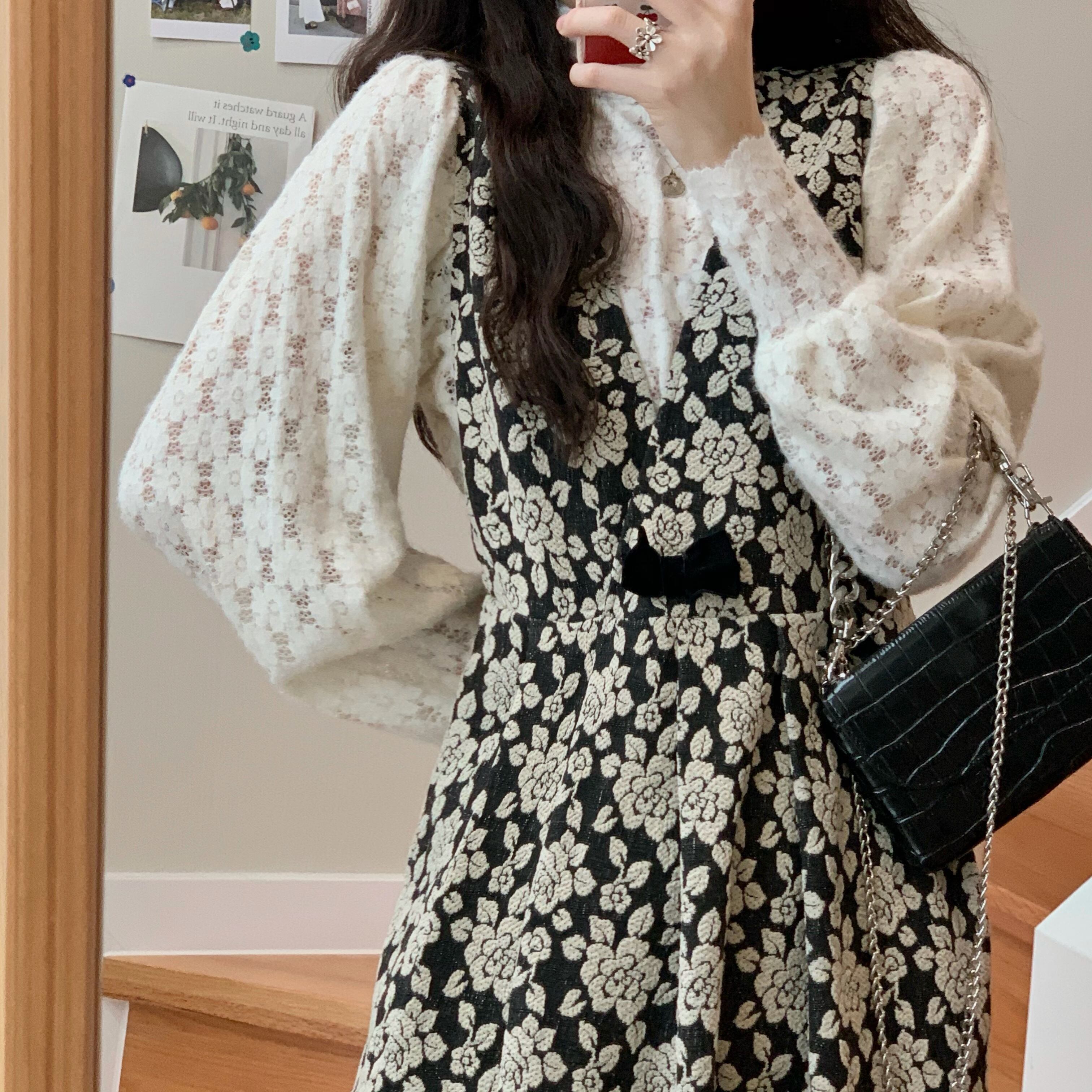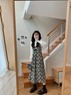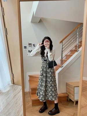 【韓国通販 dgo】middle-length floral v-neck one-piece(A0637)