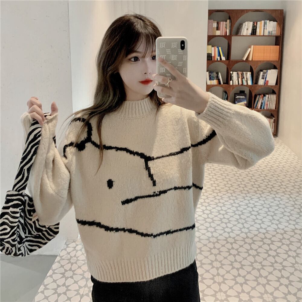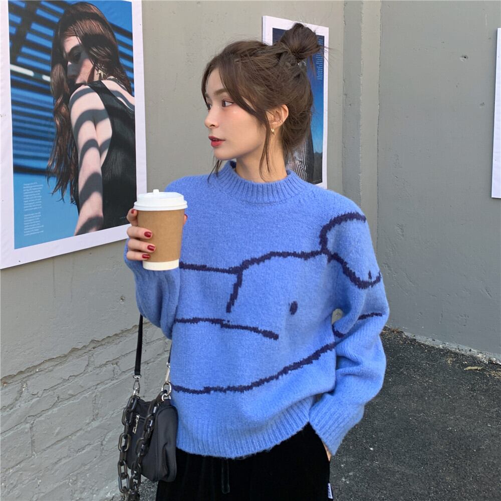 【韓国通販 dgo】retro round neck pullover sweater 3colors(A0635)