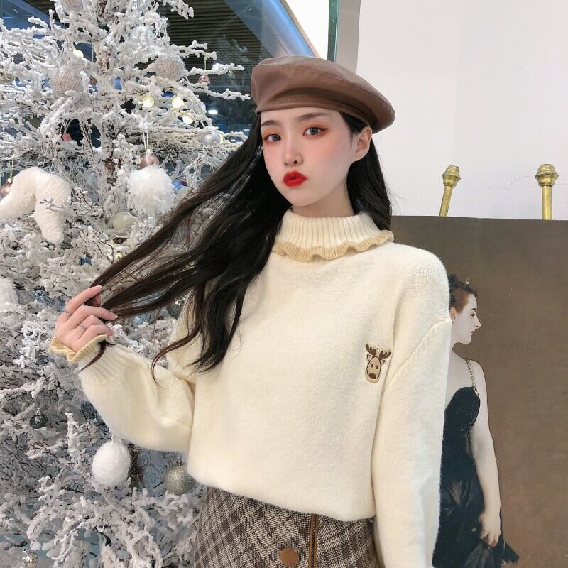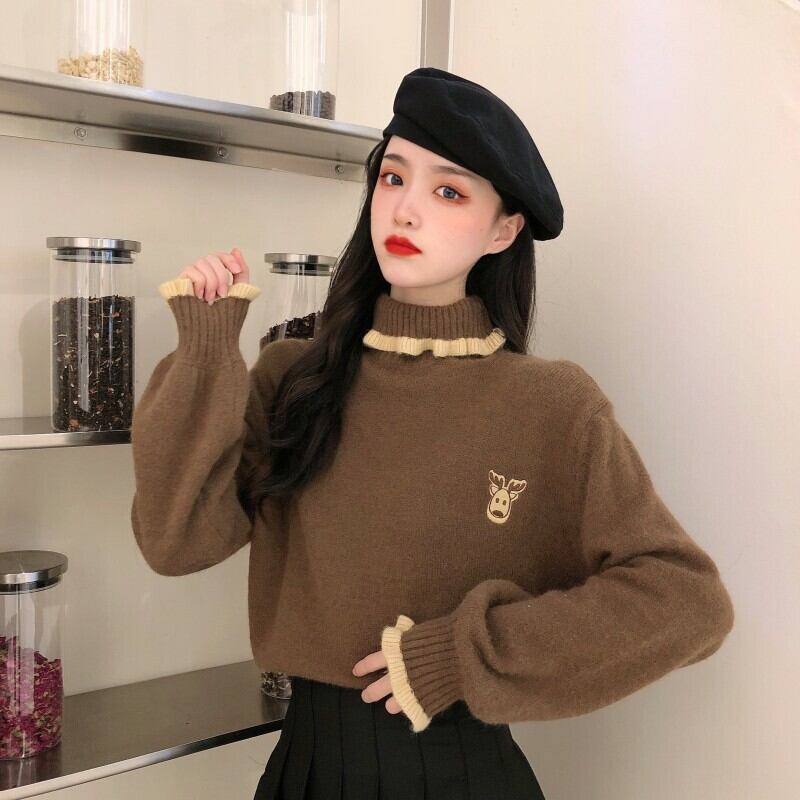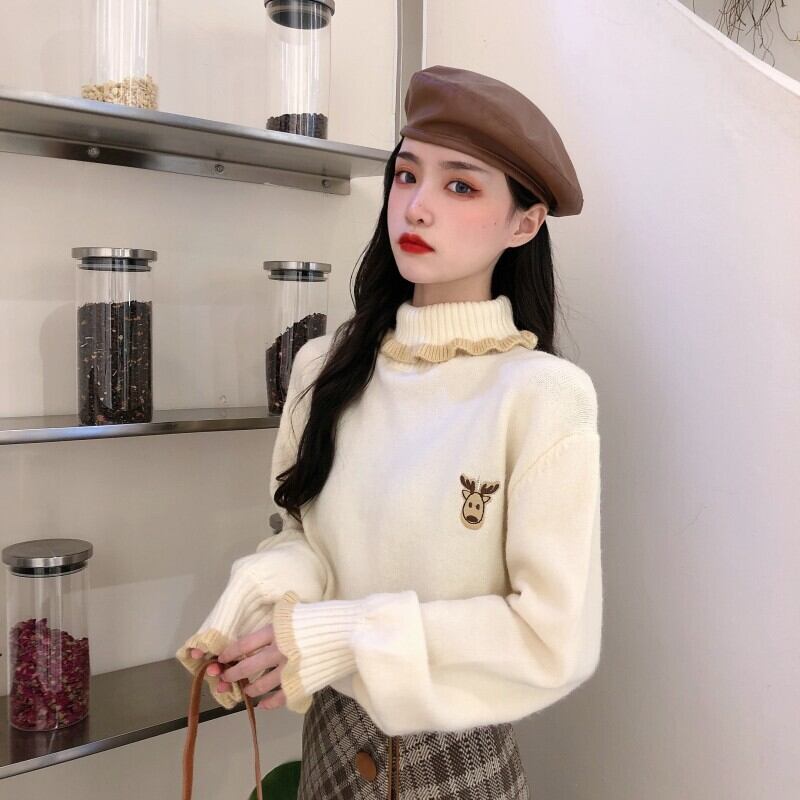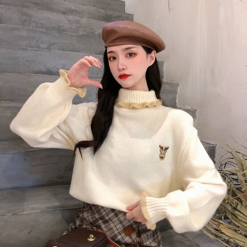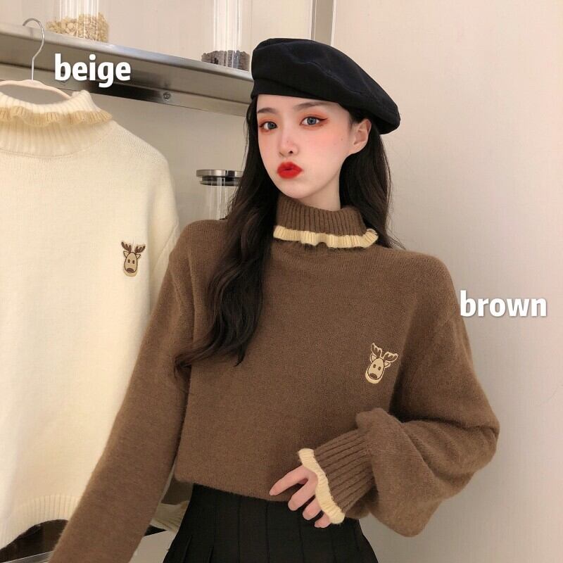 小鹿の刺繍が入ったとても可愛いハイネックセータです。