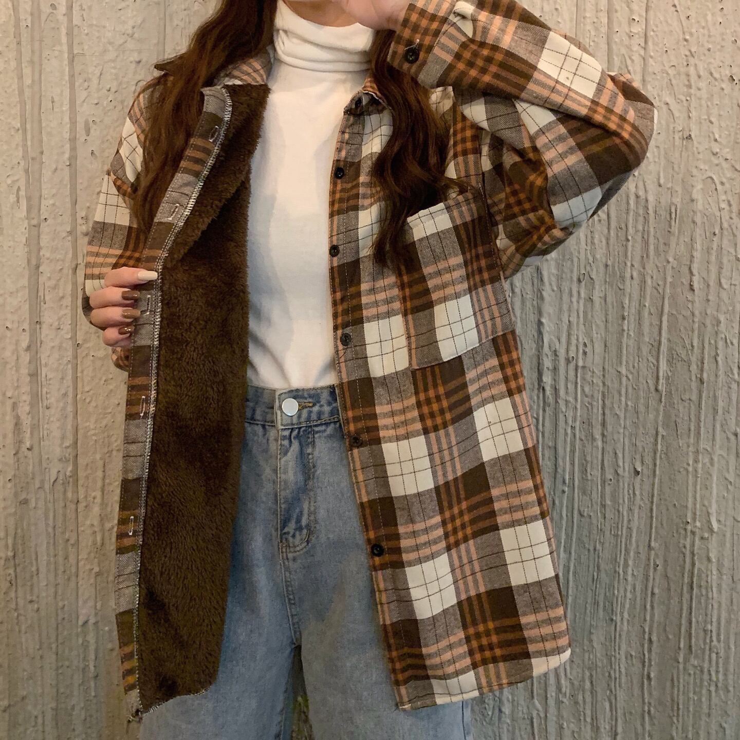 【韓国通販 dgo】retro checked polo collar shirt plus velvet 3colors(A0627)