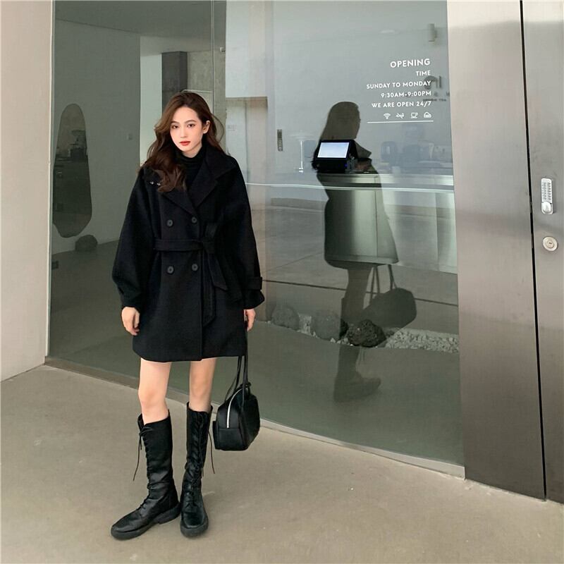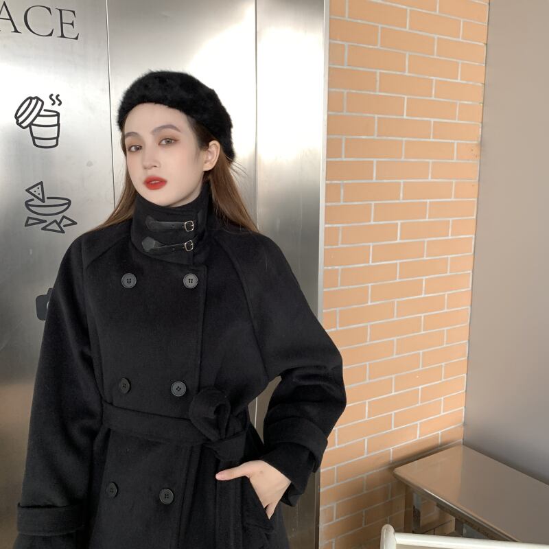 【韓国通販 dgo】middle-length double breasted wool jacket black color(A0617)