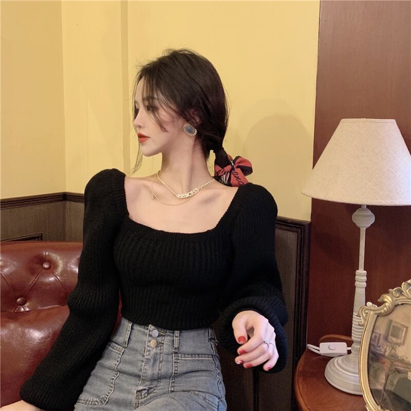 【韓国通販 dgo】puff sleeve square neck sweater 3colors(A0618)