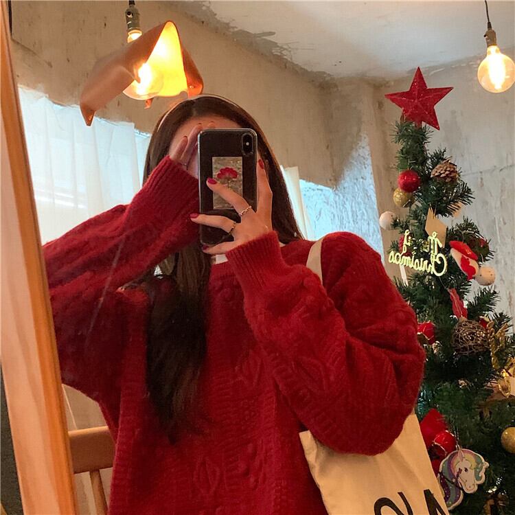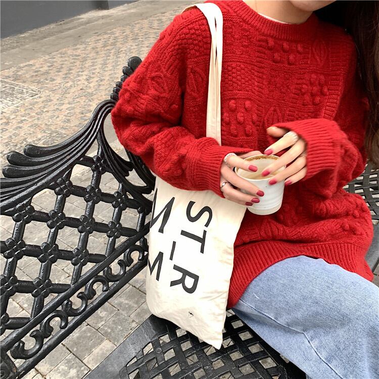 【韓国通販 dgo】round neck sweater red color(A0619)