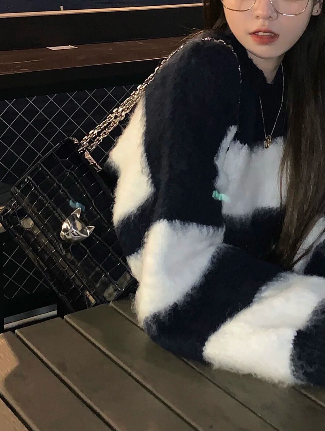 【韓国通販 dgo】round neck pullover sweater black+white(A0611)