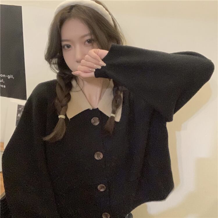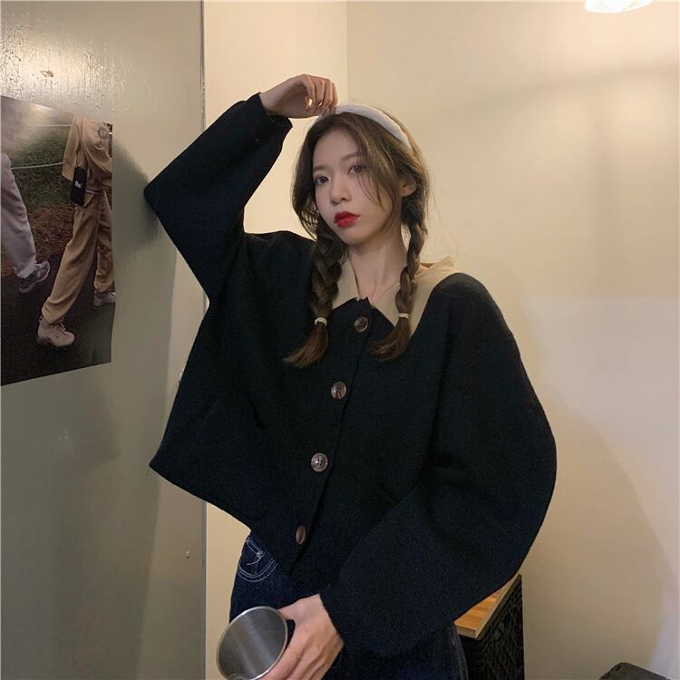 【韓国通販 dgo】polo collar short knit cardigan 2colors(A0603)