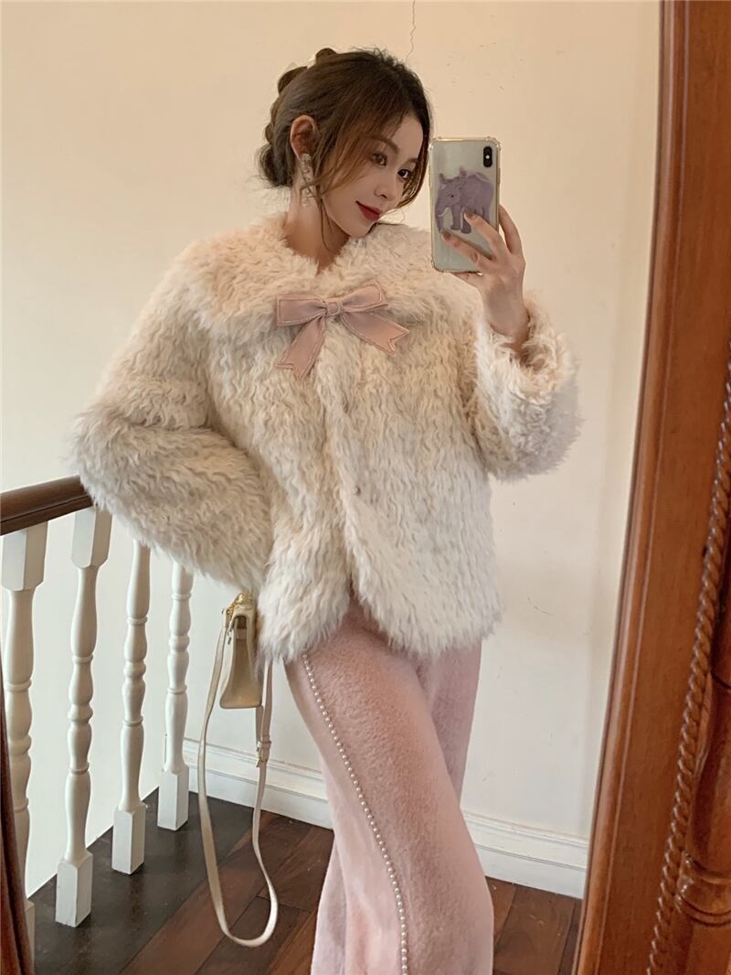 【韓国通販 dgo】polo collar lamb velvet jacket white color(A0600)