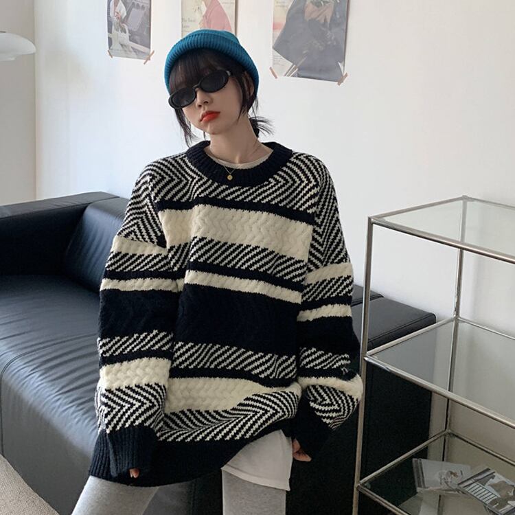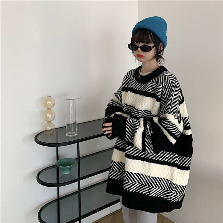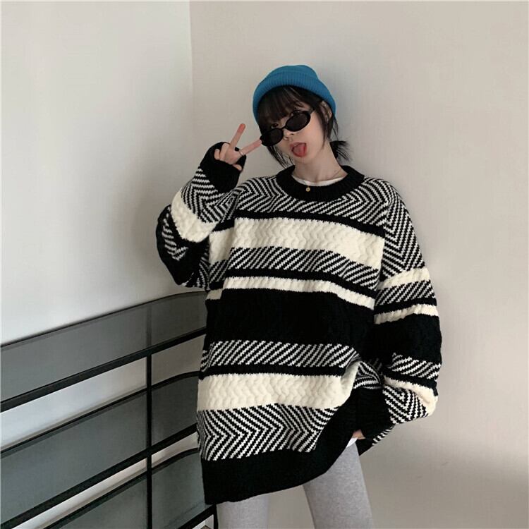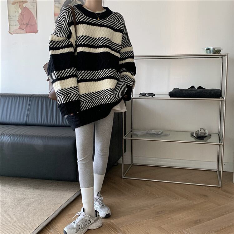【韓国通販 dgo】retro round neck stripe sweater (A0597)