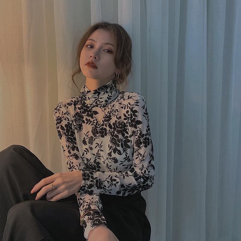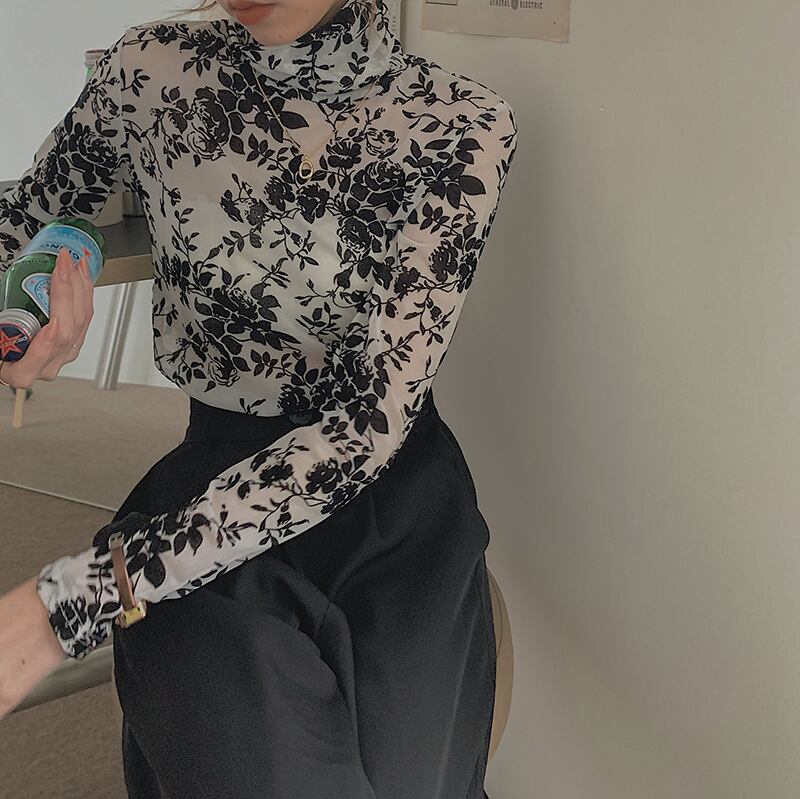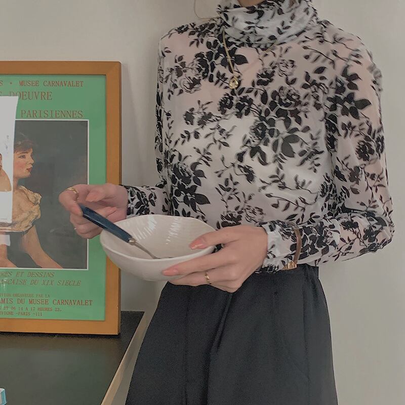 【韓国通販 dgo】half high neck floral tops(A0591)
