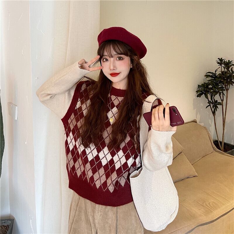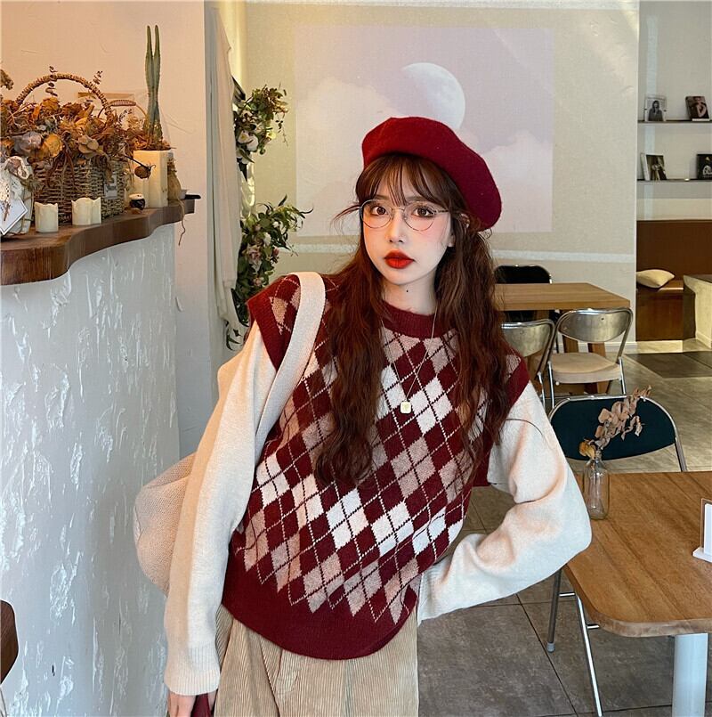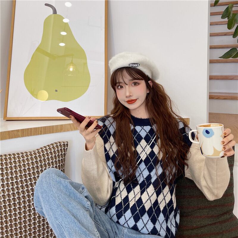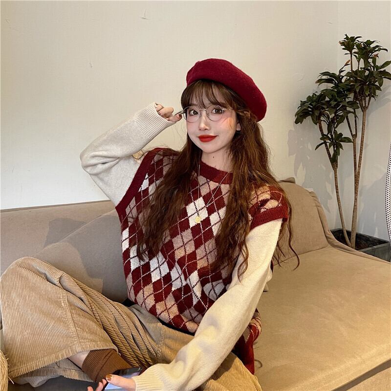 【韓国通販 dgo】round neck fake two-piece knit sweater 3colors(A0589)