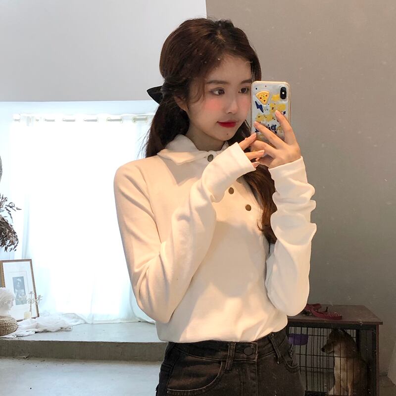 【韓国通販 dgo】polo collar long sleeve tops 2colors(A0588)