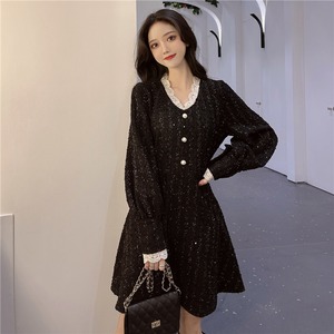 【韓国通販 dgo】high-waist lagran sleeve one-piece dress 2types 2colors(A0586)