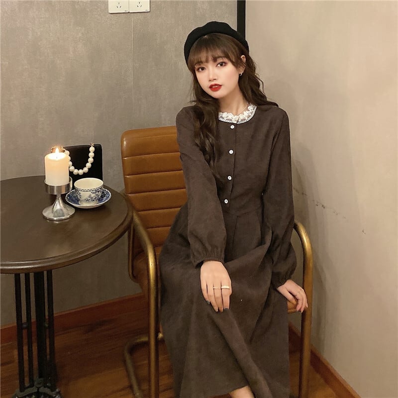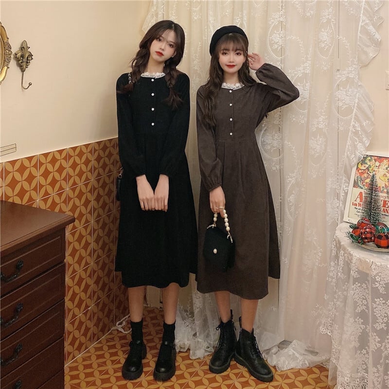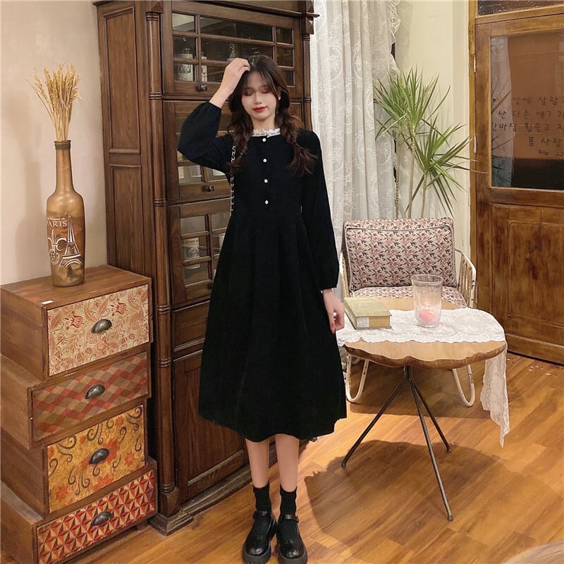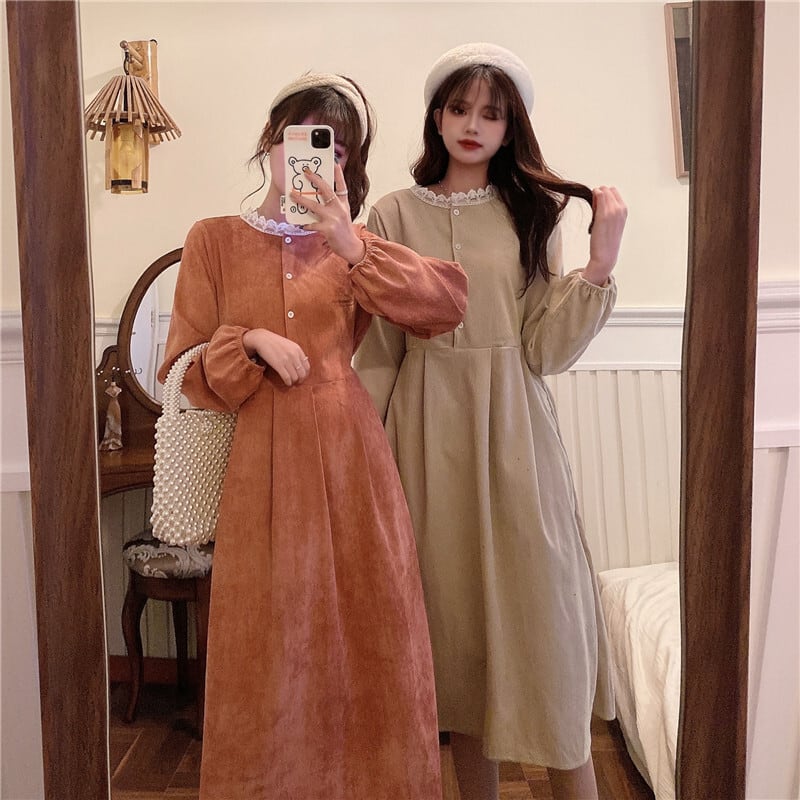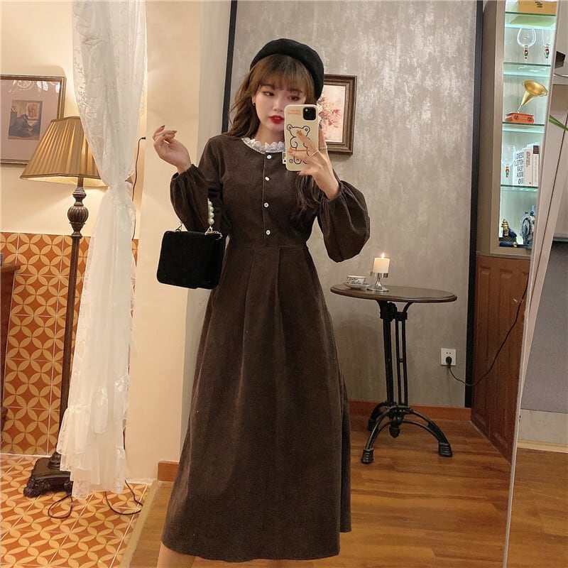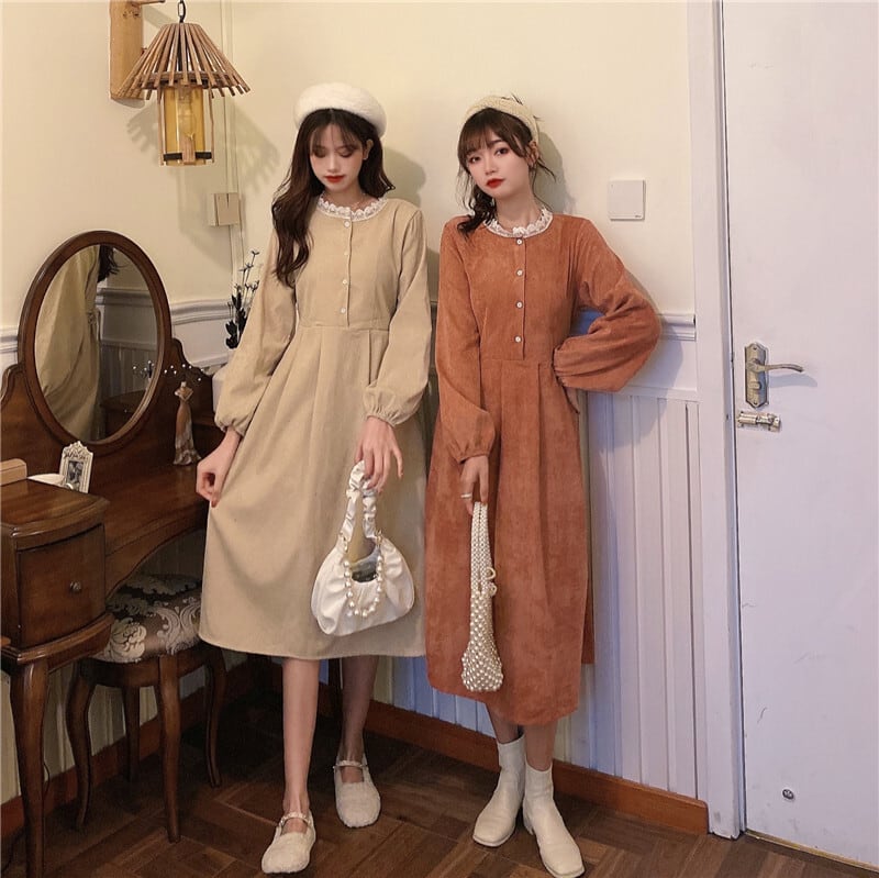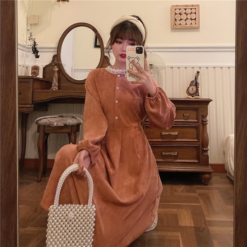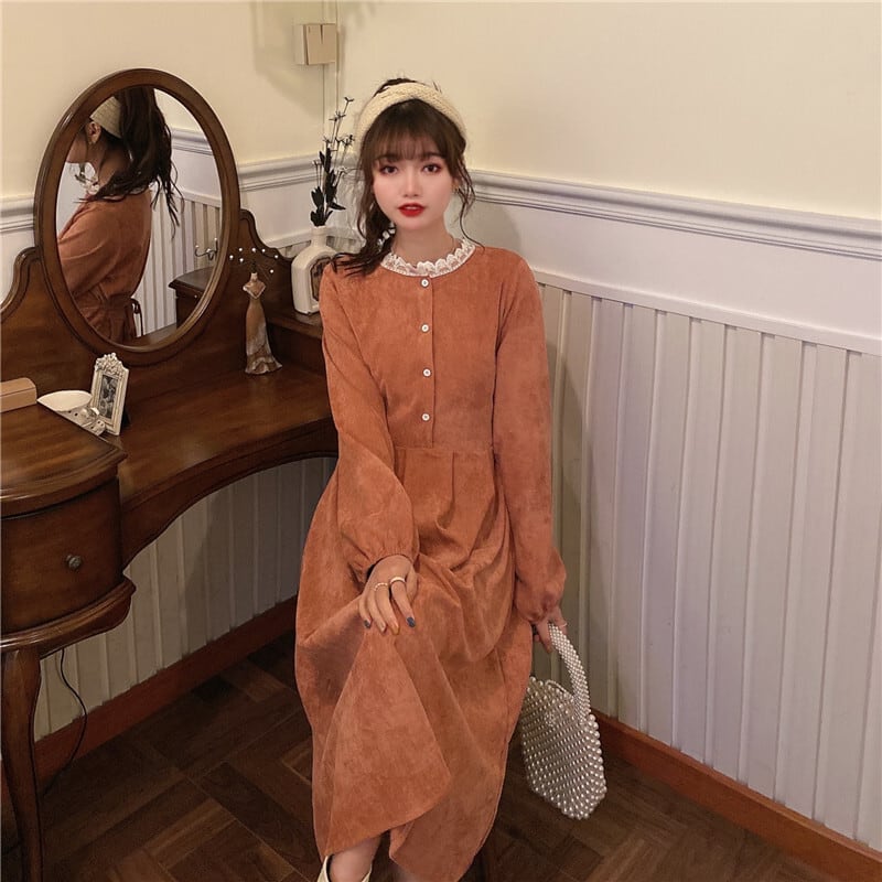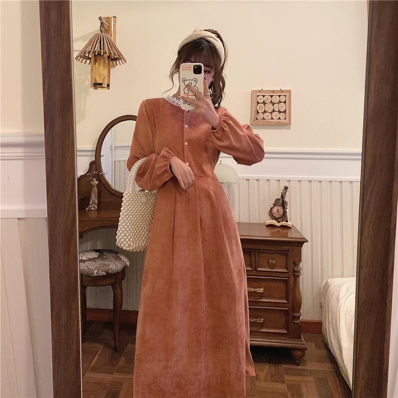 【韓国通販 dgo】middle-length corduroy one-piece dress 4colors(A0582)センス溢れるファッションitem