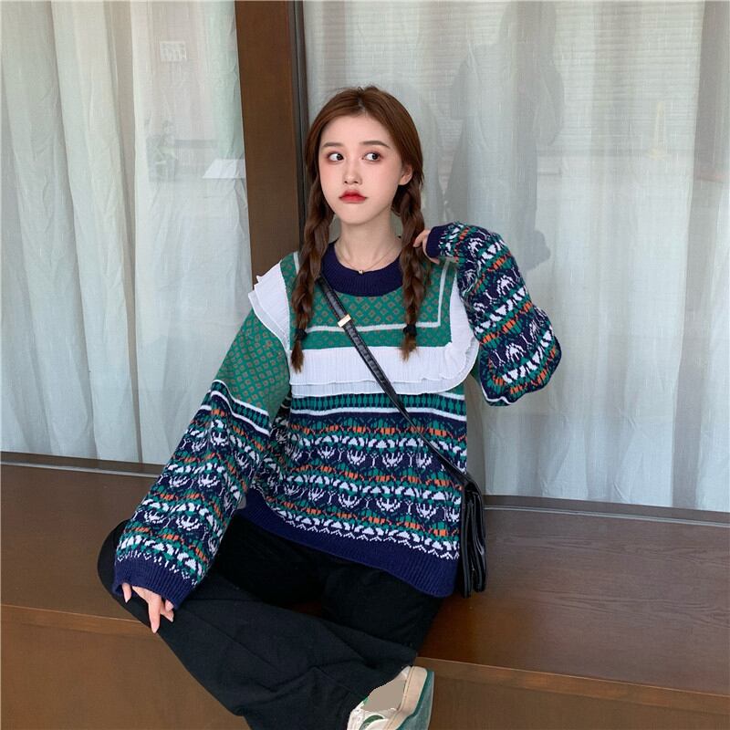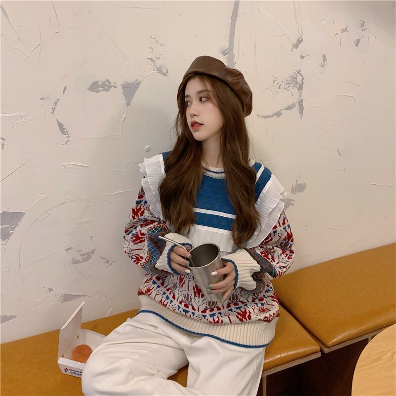 【韓国通販 dgo】retro round neck sweater 2colors(A0578)