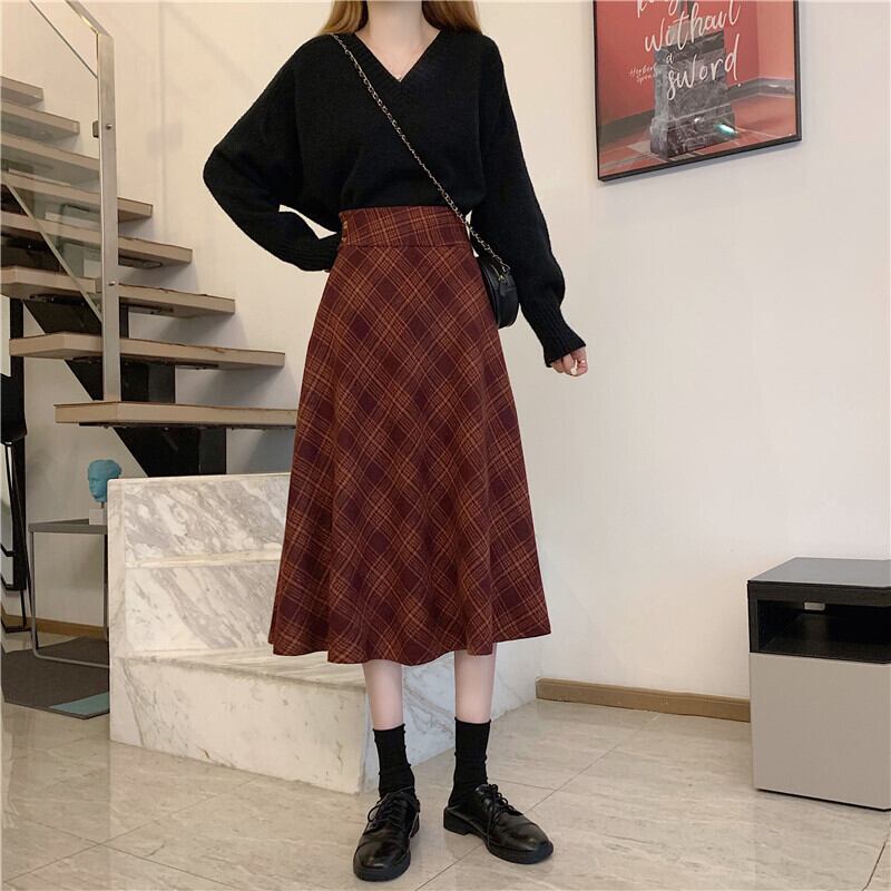 【韓国通販 dgo】high-waist middle-length skirt 2colors(A0573)