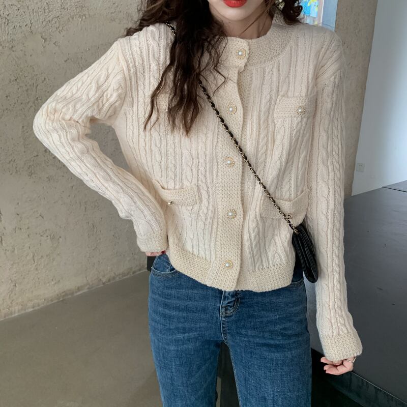 【韓国通販 dgo】low round neck cardigan sweater 2colors(A0565)