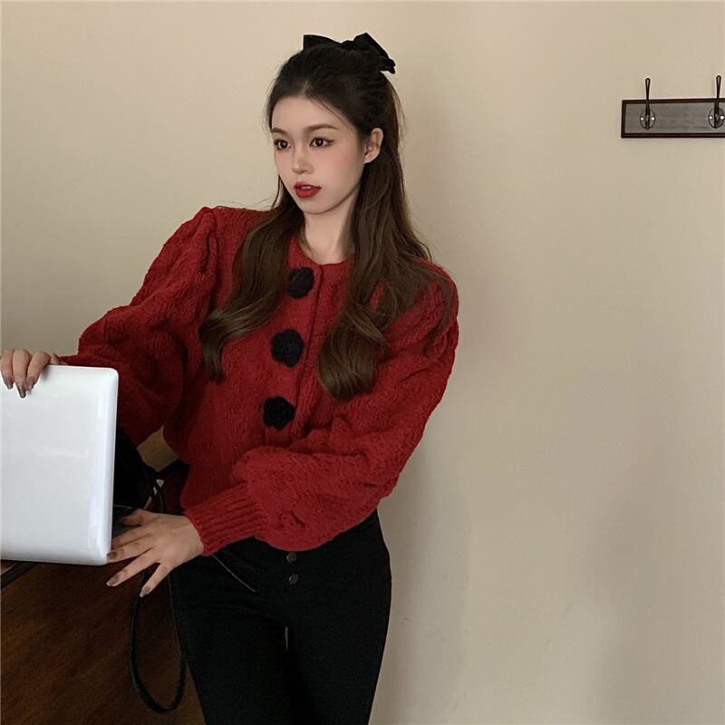 【韓国通販 dgo】round neck vintage cardigan sweater 4colors(A0557)