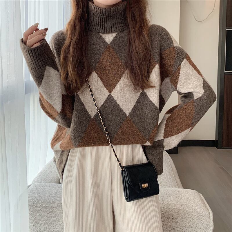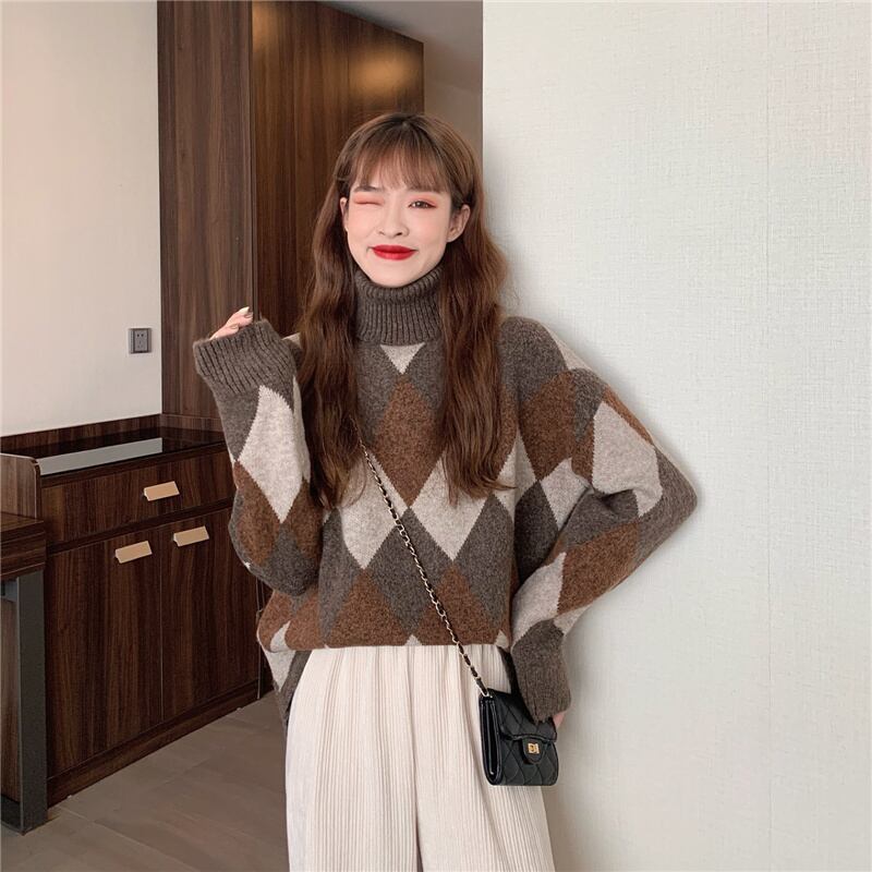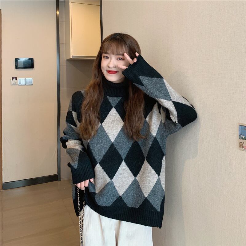 【韓国通販 dgo】retro high neck diamond sweater 3colors(A0544)