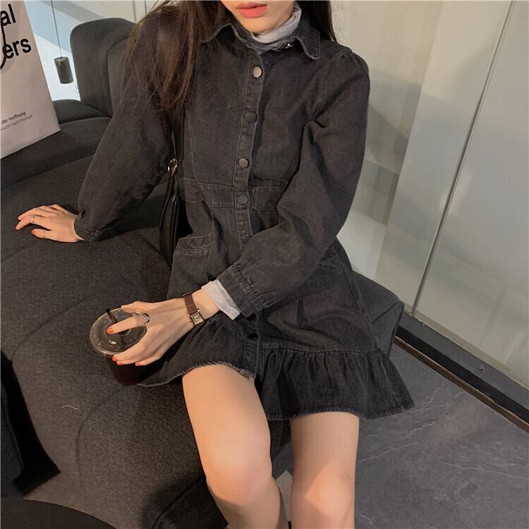 【韓国通販 dgo】polo collar frill one-piece black colors(A0542)