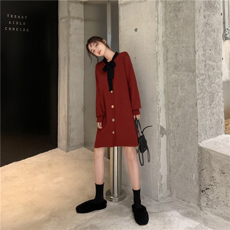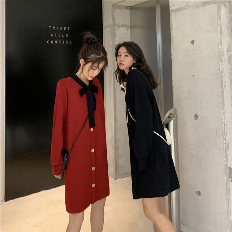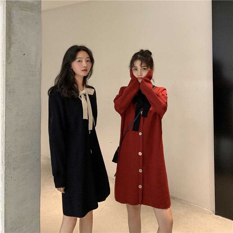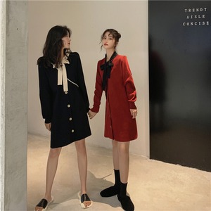 【韓国通販 dgo】retro round neck one-piece dress 2colors(A0536)