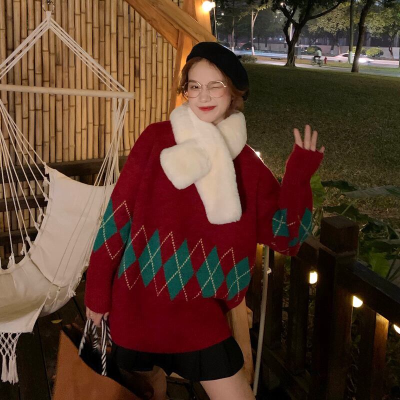 【韓国通販 dgo】pullover round neck diamond sweater 2colors(A0535)